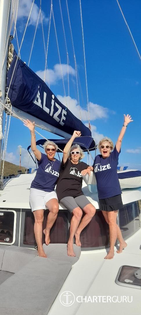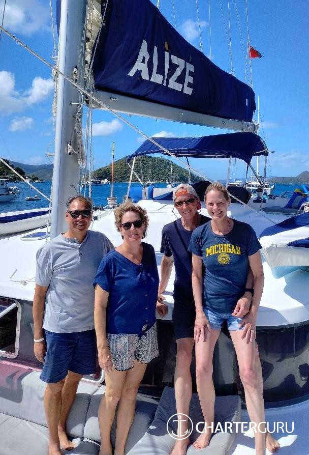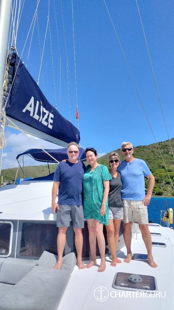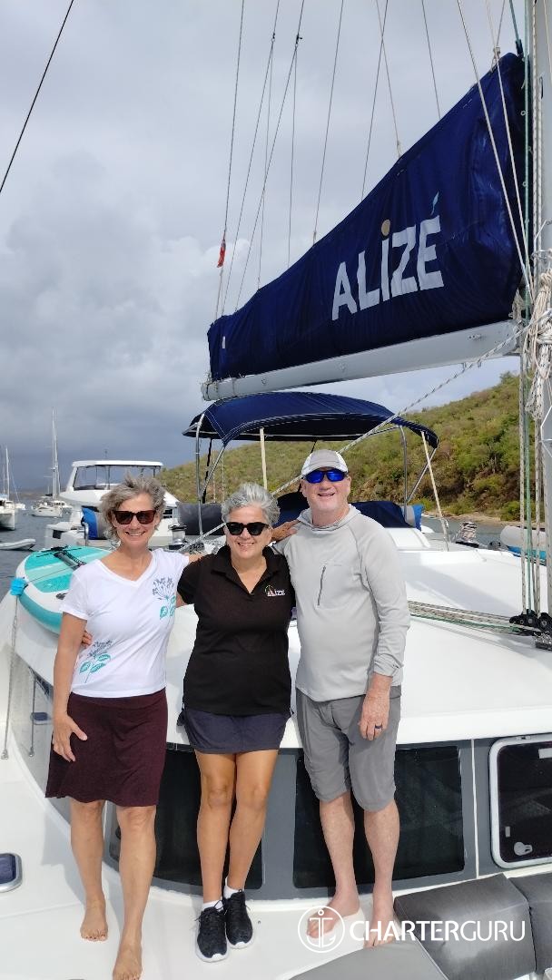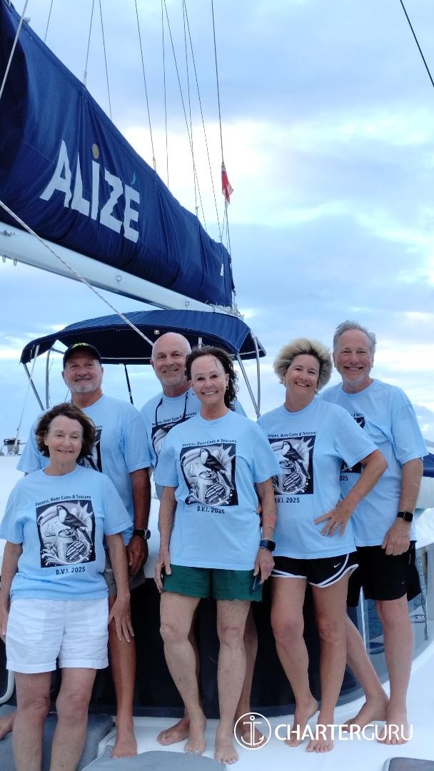 You made this trip possible. We didn't think it was going to happen. You made it happen. The ALIZE is beautiful. We had the most relaxing, fun and amazing time. The food was WOW! So Yummy! Drinks were perfect and kept coming. Just how we like. You both are fantastic hosts. Listening and watching who we are and took us to the best places in the BVI. We do not want to leave!! Thank you so much for taking great care of us . We have the best memories to take with us and great shirts!!