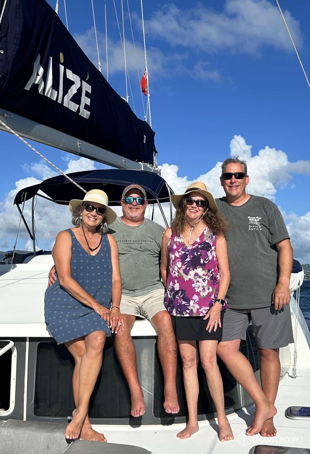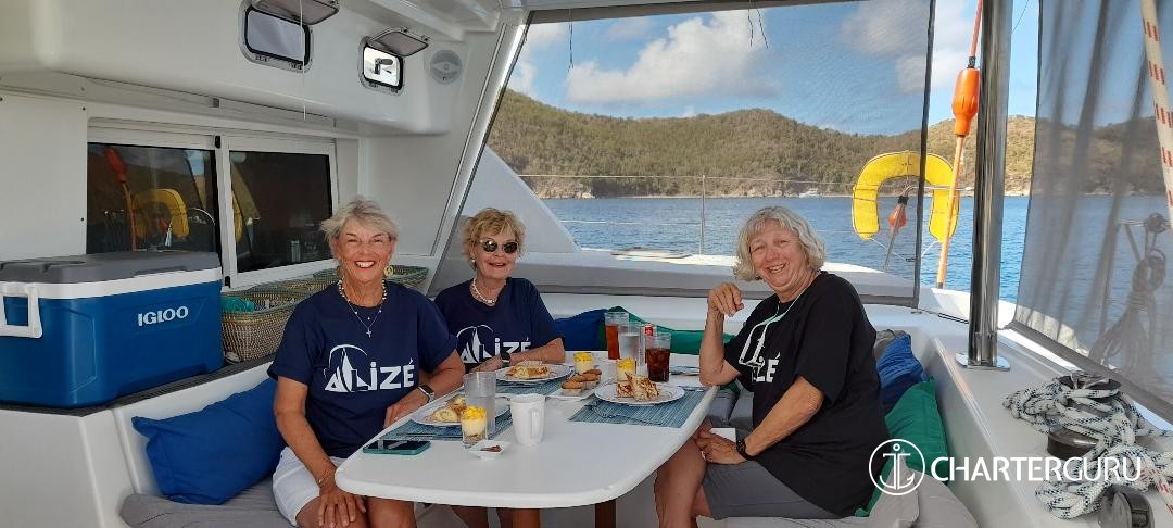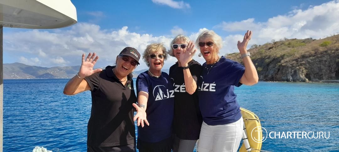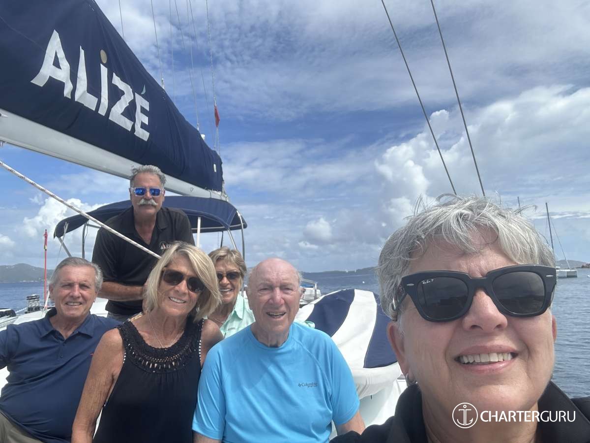You made this trip possible. We didn't think it was going to happen. You made it happen. The ALIZE is beautiful. We had the most relaxing, fun and amazing time. The food was WOW! So Yummy! Drinks were perfect and kept coming. Just how we like. You both are fantastic hosts. Listening and watching who we are and took us to the best places in the BVI. We do not want to leave!! Thank you so much for taking great care of us . We have the best memories to take with us and great shirts!!