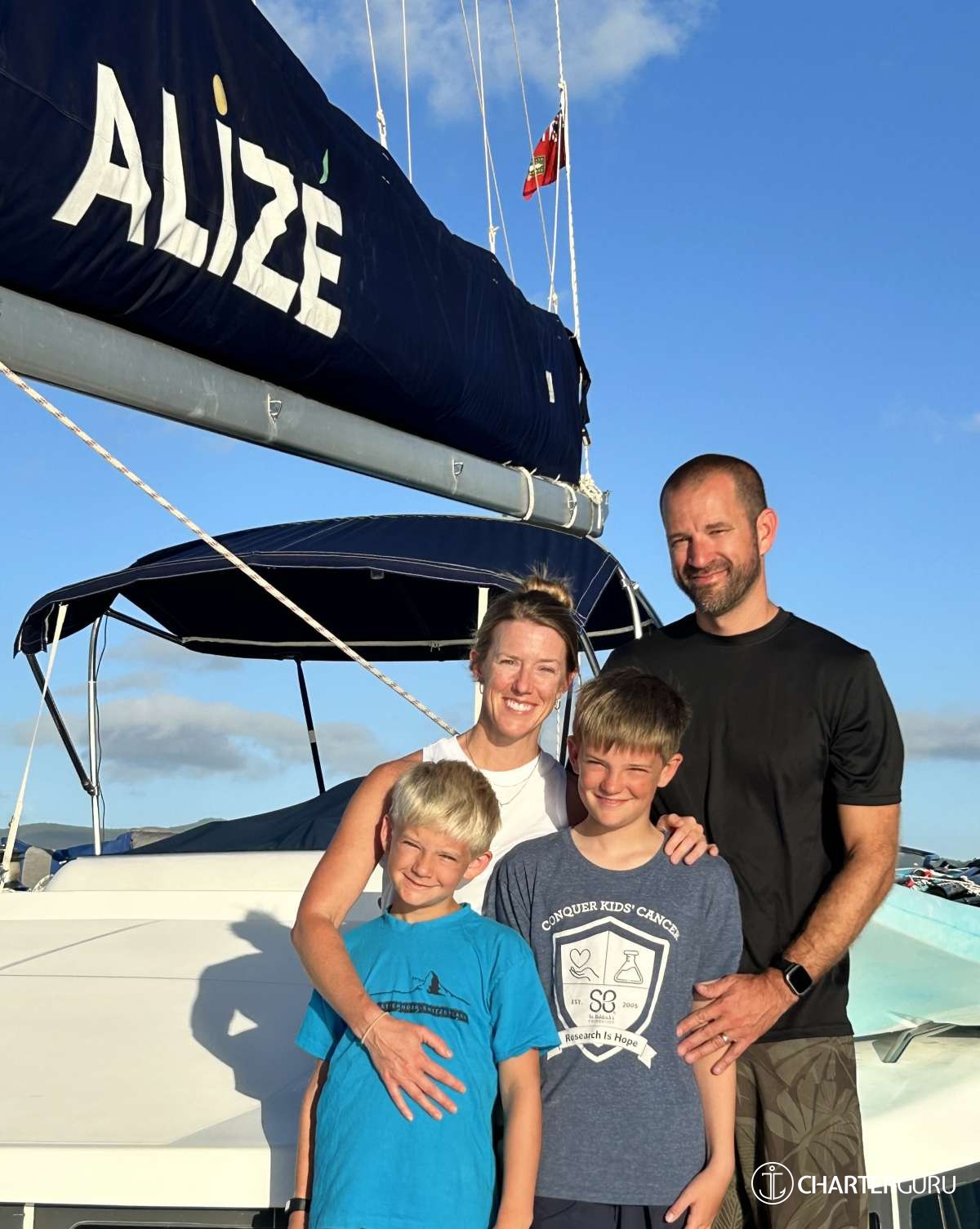 Thank you for having us aboard the ALIZE. We appreciated the thoughtful tour of the BVI. Each place we visited was an absolute treat. We had so much fun snorkeling and visiting the islands! Seeing several turtles up close was a highlight. Encountering multiple manta rays was at first terrifying for Brandt, but was beautiful. Allergy friendly cooking is not an easy feat, but was greatly appreciated and Grace always felt safe.