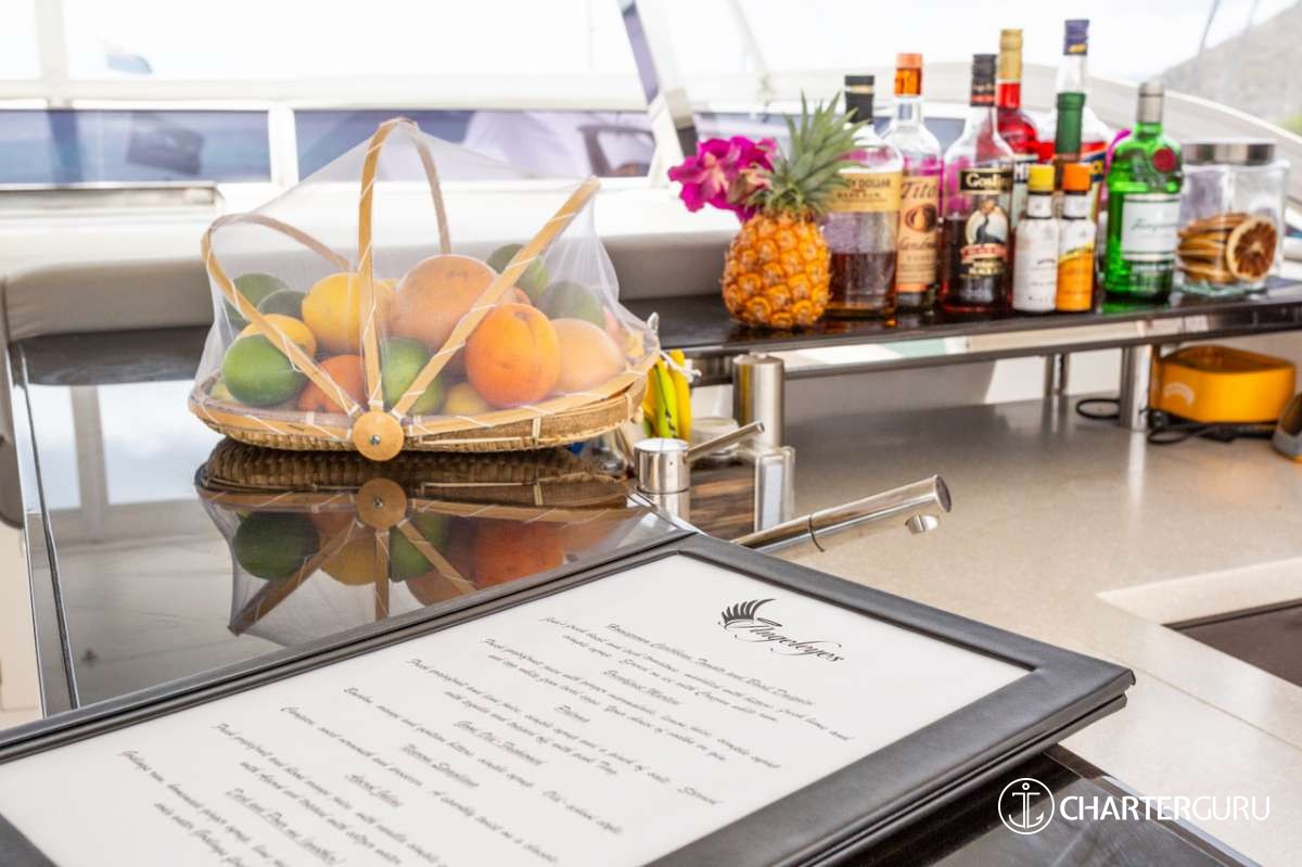Provisioning, fuel and crew are included in the price. Additional fees may include diving, premium alcohol, local taxes, or onshore activities.