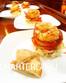 Gourmet, like straight from Lifestyles of the Rich & Famous. Amber has a wonderful talent and made fabulous meals and desserts, it was amazing what she produced from a small galley