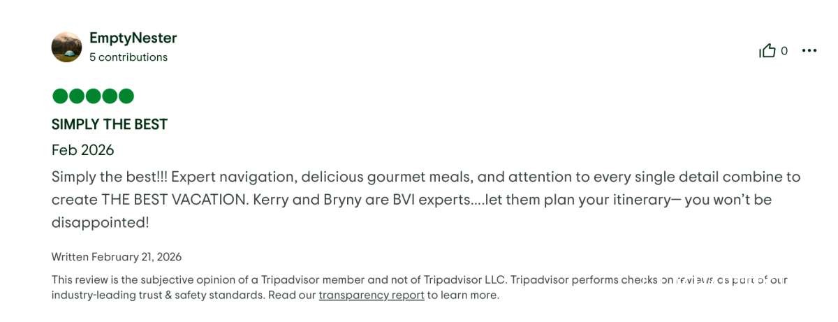 Bertie’s knowledge of the BVIs is unparalleled. The scenery was breathtaking. The turquoise waters and lush landscapes you only dream about.