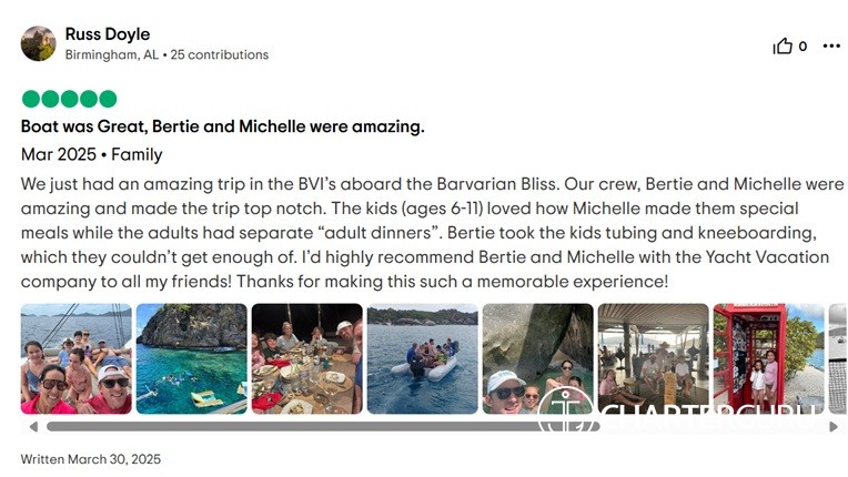 Guests aboard Bavarian Bliss can expect not just a capable captain, but also a vibrant and engaging host. Kerry thrives on sharing her love for the ocean, whether guiding a dive, leading a shore excursion, or simply ensuring every moment onboard is comfortable and memorable. Brokers will appreciate her strong track record of seamless operations, while guests will value her balance of professionalism and warmth—qualities that make every charter on Bavarian Bliss both safe and unforgettable .