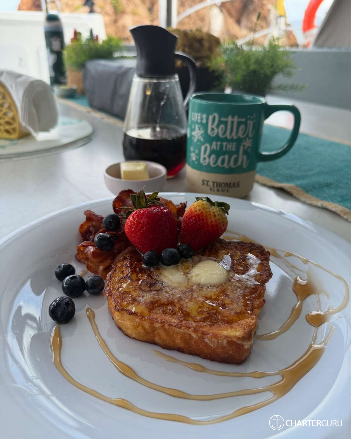 Peta has been sailing and cooking in the Virgin Islands for over a year and a half, and she loves nothing more than sharing her passions with guests onboard. In the galley, she creates fresh, flavorful meals tailored to each group — from vibrant island dishes to comforting favorites — always with a little extra flair. When she’s not cooking, you’ll find her working alongside the captain as first mate: sailing, snorkeling, and making sure every detail of your trip runs smoothly. She’s known for her warm personality, love of good food, and ability to make everyone feel at home the moment they step aboard. Whether she’s whipping up a homemade dessert, teaching paddleboard basics, or dancing along to island tunes, Peta brings joy and care into everything she does.