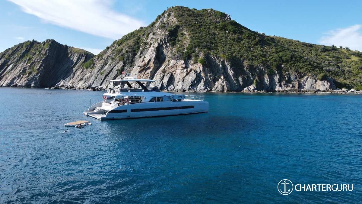 C’est La Vie was designed to create unforgettable vacation experiences exploring a range of activity and relaxation, mixed with high end luxury and unrivaled adventure, all amidst a tropical backdrop. A well-appointed 2022 Lagoon Sixty7, C’est La Vie offers bespoke luxury in 2 spacious Queen cabins and a massive master cabin, each with en-suite washrooms and plenty of living space. Topside you will find multiple sun beds, loungers and wet bars aplenty.