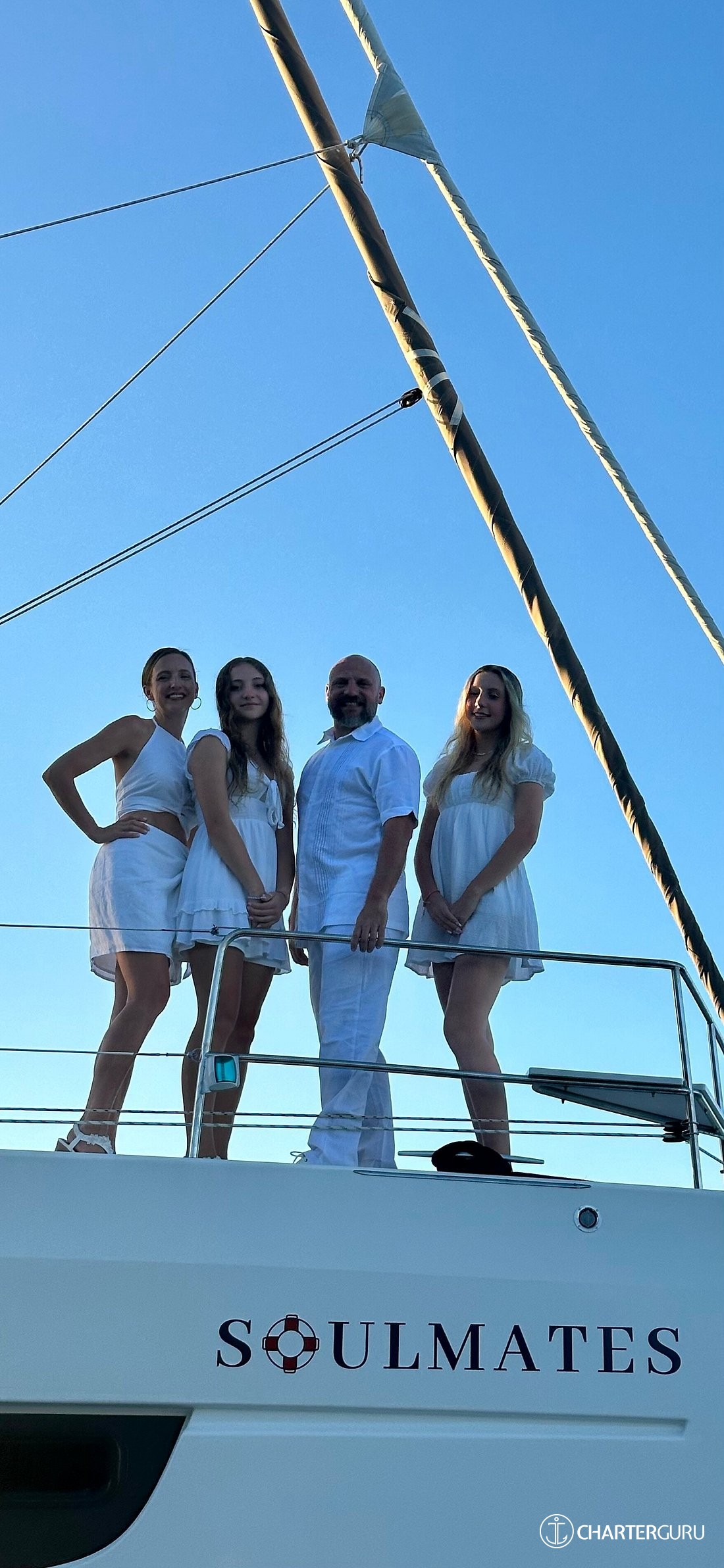 Soul Mates is introduced primarily as a sailing catamaran. The the heart of the yacht is the main saloon, which connects to the aft deck. The aft deck is where heart of the yacht is and that's where most of the delicious meals are served. The tastefully decorated cabins are located below the main saloon, connected by stairs (inquire about handicapped access). The cabins offer unbeatable views in the morning and are located just below deck. Multiple portholes supply a sunny feeling, with the option for darkness and privacy.