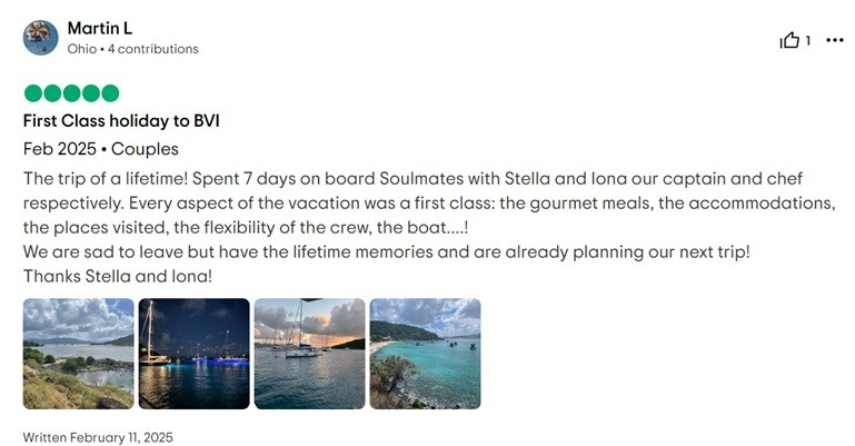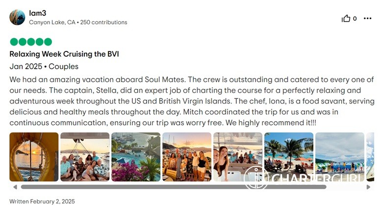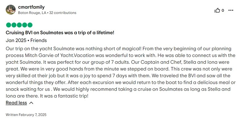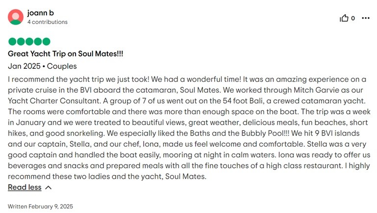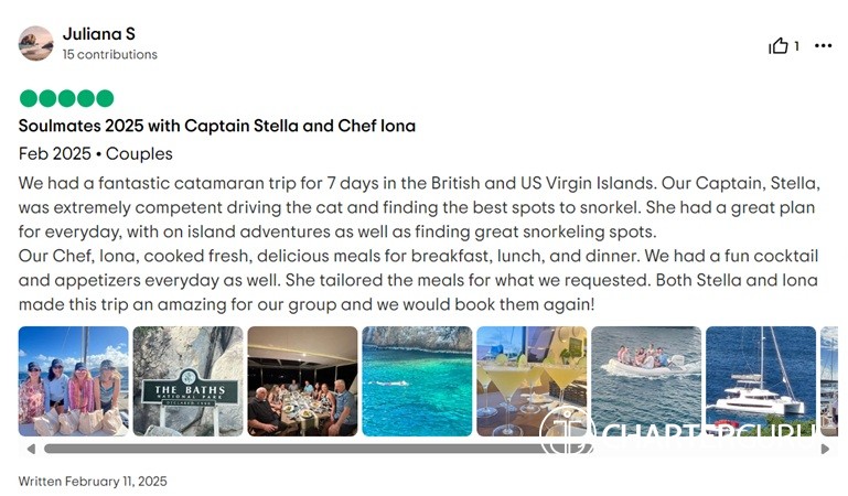 7. Any tandem charter involving multiple yachts requires the guests that paid for a specific yacht and are on that yachts manifest to be the only guests on that yacht during meal services, while underway, and overnight sleeping. This is due to safety and maritime requirements. Pickups outside of the BVI have a relocation fee.