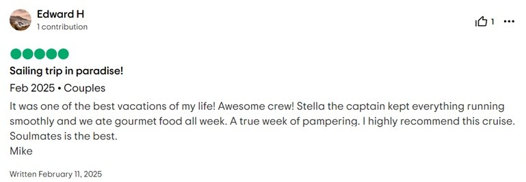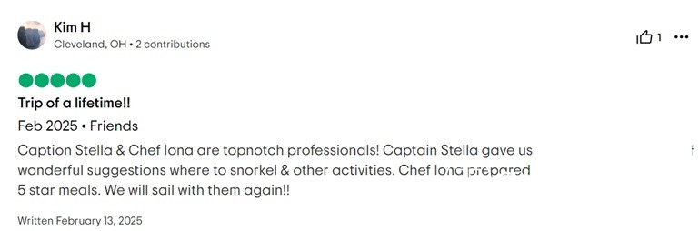 Captain Stella’s knowledge of the boat, the area and sailing in general is impressive and puts even the most novice boater at ease. We felt incredibly safe in her hands and loved hearing about her favorite spots and future sailing plans.