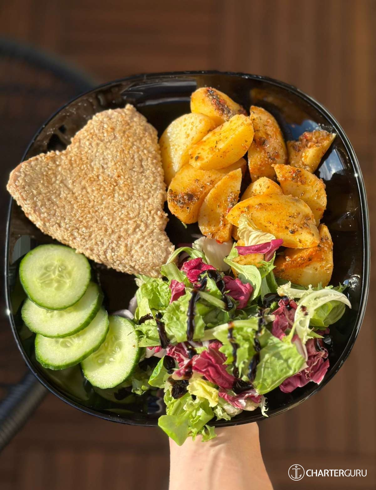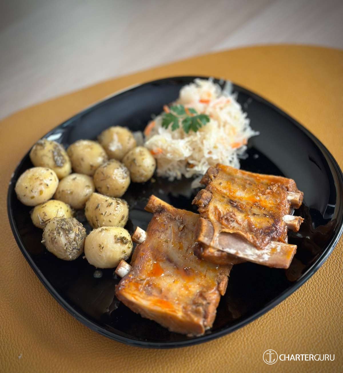 The expenses, such as provisioning, fuel, marina fees, are deducted from the APA. The APA is based on the price of the yacht and ranges from 15% (crewed sailing yachts) to 30% (motor yachts with higher fuel consumption).