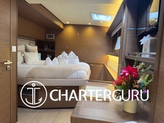 Dragonfly is a luxury yacht that accommodates up to 8 guests in 3 queen cabins and one bunk cabin, each with its own en-suite head with a dry shower. The master cabin suite aboard DRAGONFLY includes a seating/lounge area and desk, queen-size berth large glass shower stall and separate vanity area and offers direct access to the aft deck for slipping out to gaze at the stars and take a midnight dip off the stern. The master suite also has direct private access to the main salon.