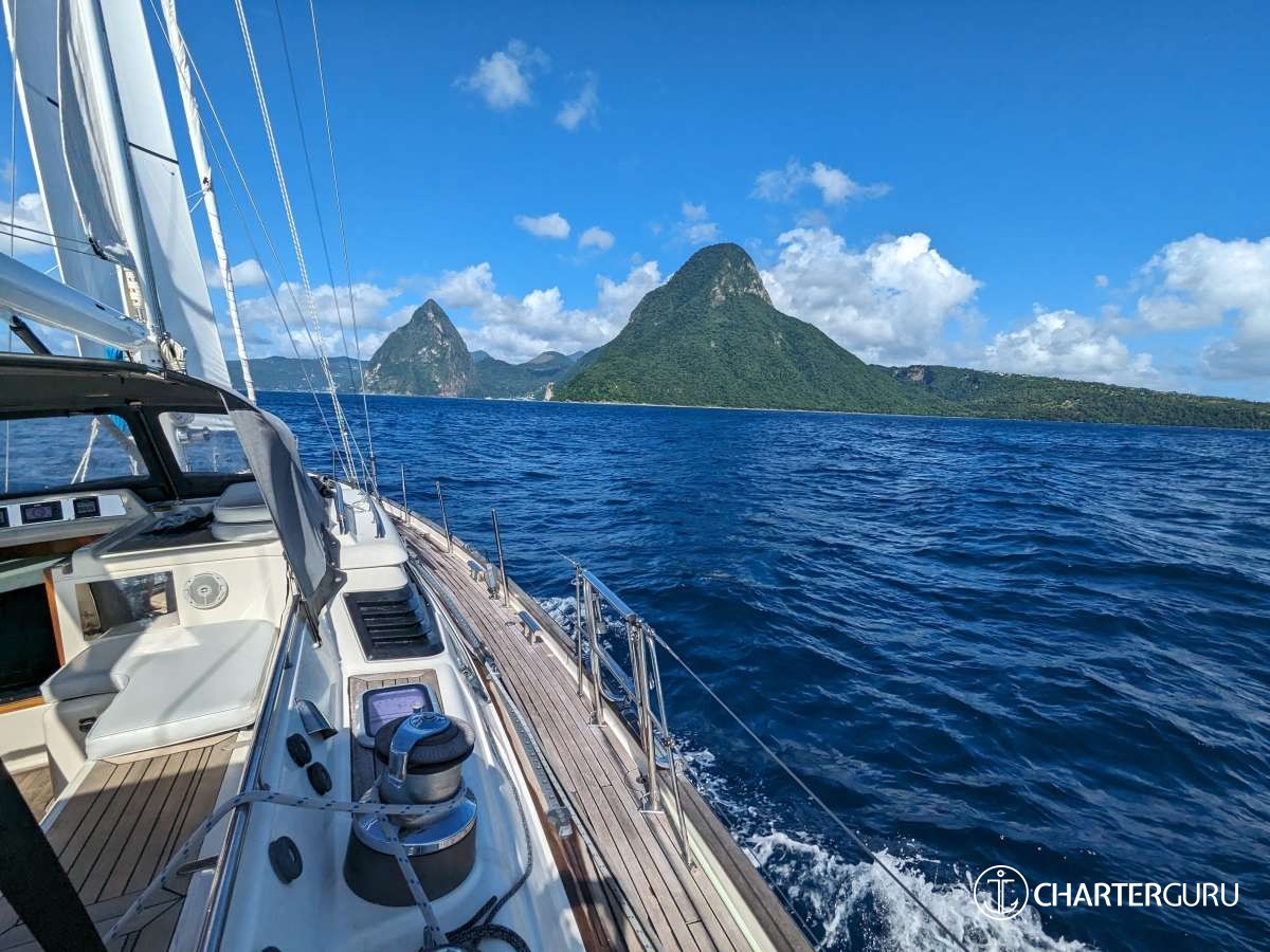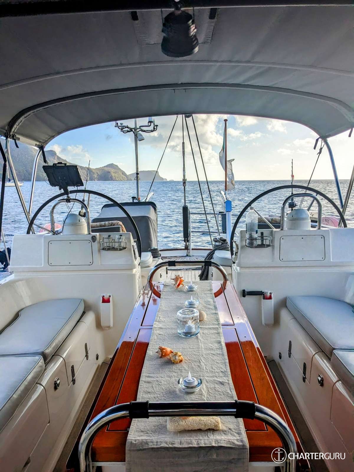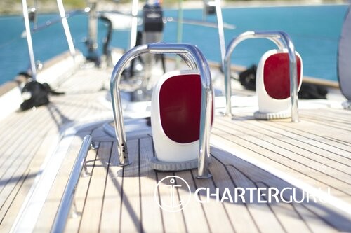 With Doyle Stratus sails, a cutter rig for optimized sailing, and twin helms for excellent handling, Elvis Magic is built to perform — whether you are cruising peacefully or racing across turquoise seas.