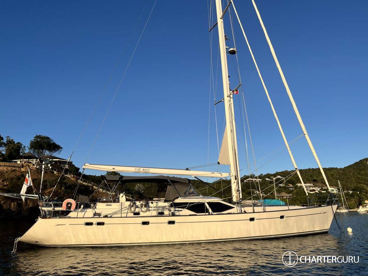 Offered by DMA Yachting, the breathtaking charter yacht ELVIS MAGIC is a 66 ft sailboat. The primary distinction of ELVIS MAGIC are her impeccable styling and fantastic layout. ELVIS MAGIC spends the summer and winter season in St. Maarten/St. Martin. She was delivered by the renowned boatbuilder Oyster Marine in 2003. A succesful refit was delivered in 2025 - New Teak Deck Dec 2025 - New 4m Achilles tender 2024 - New stainless rod rigging, New Mainsail, New Indesit washer and dryer machine 2023 - New Gib 2023 (all sails are less than 3 years old) 2022 - New Staysail, New house batteries 2022 2020 - Tender davits reinforced, Rudder and shaft bearings changed, Antifoul (Black) 2018 - Through hull fittings - New Zealand composite 2017 - Rig pulled and serviced, Deck hatches changed, Hyde sails - Full suit including blue spinnaker, Refrigeration systems, Anchor windlass motor and chain 2016 - Generator - Northern lights 11kw, Bow thruster hydraulic motor and blades 2012 - Main engine - Perkins Sabre 225ti . The spacious yacht layout features 3 cozy cabins and easily accommodates a group of 6 guests.
