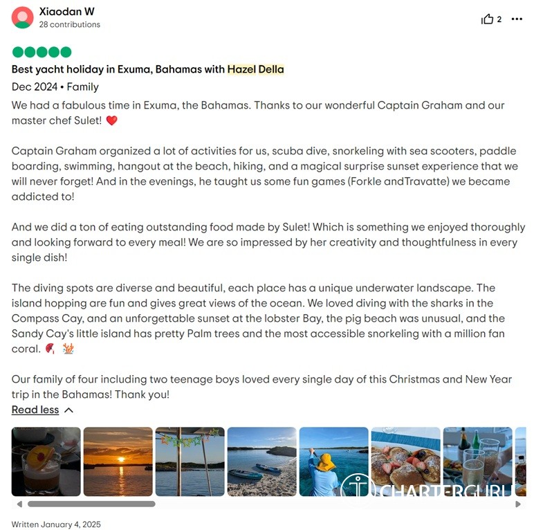 Captain Graham is not just a skilled navigator but also an exceptional host, whose passion for the ocean and the islands shines through in every interaction. He expertly guided us through the stunning waters, sharing fascinating stories about the Exumas, ensuring our safety, and always making us feel at home aboard the Hazel Dela. His enthusiasm for adventure is infectious, and his local knowledge made every stop feel special and unique.