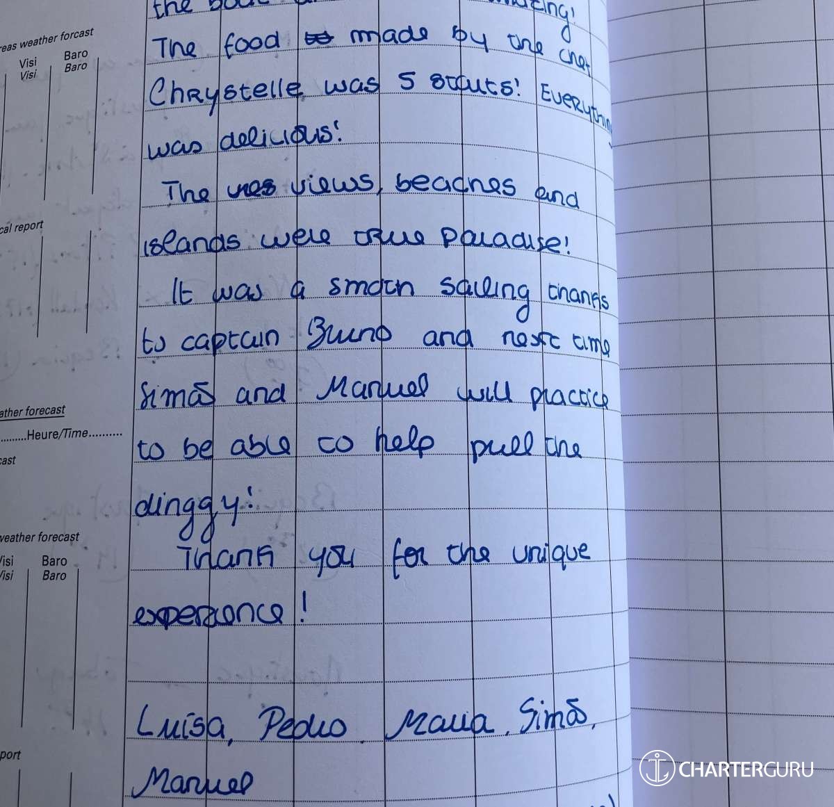 Not only will I recommend Bruno and his boats, but his lovely daughter Jessica as well, whom spoiled us with delicious food every day, baked for my kids and made fresh dishes always.