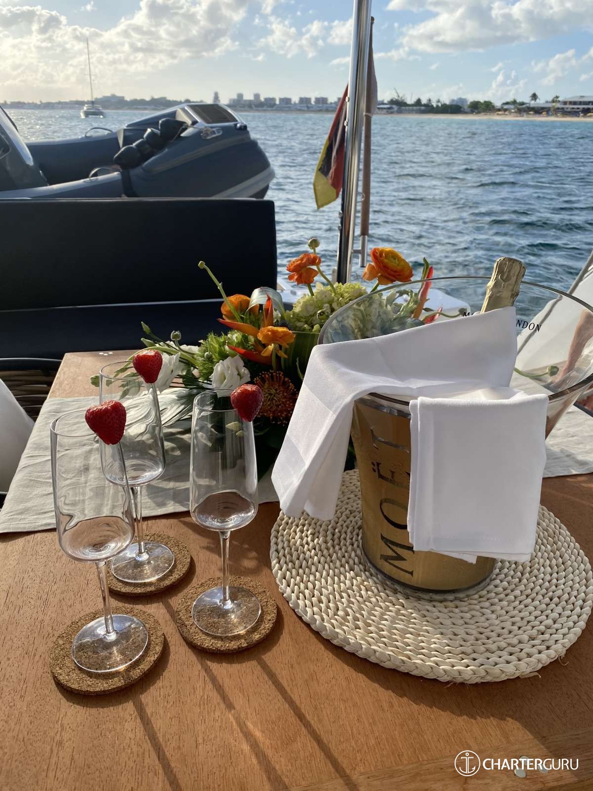 Infinity boasts an extensive list of water toys onboard which will be sure to elevate your Caribbean charter vacation experience to unparalleled heights of adventure! Soak up the Caribbean sun up top on the flybridge, lounge in the comfortable foredeck seating area or enjoy delicious meal times together in Infinity's aftdeck dining area which also doubles up as a great space for out-door movie nights via Infinity's projector screen!