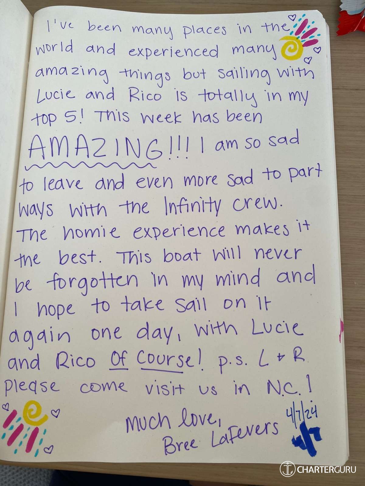 We wish always good winds to Infinity, Captain Rico and Chef Mathis!