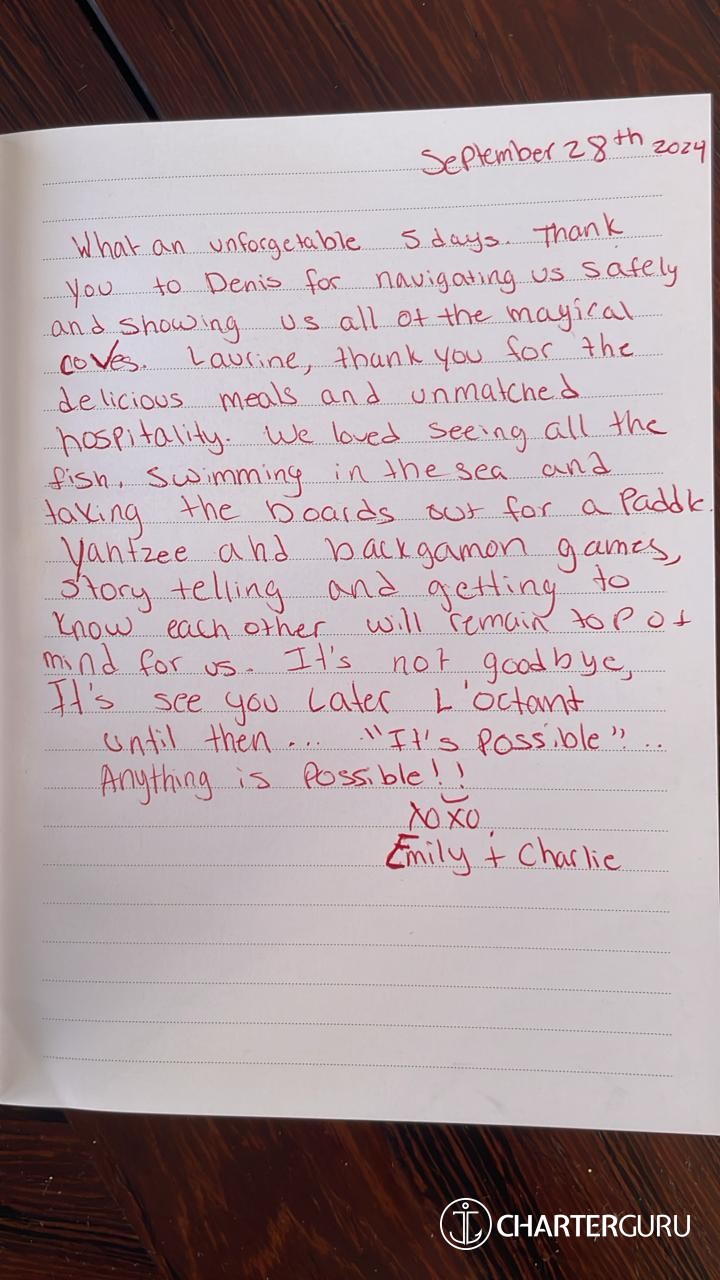 WINTER 2025/2025: Caribbean/Leenward islands Captain only rate: $9,800 / week L'octant offers captain-only charters Ideal for guests who prefer a more flexible and independent experience. With a professional skipper at the helm, you can relax and explore the Caribbean at your own pace, while managing meals and provisions to suit your personal style and preferences. Captain’s Services Include: - Provisioning Assistance: Expert help to stock the yacht. - Galley Support: Assistance with meal prep and after-meal clean-up. - Coordination of Essentials: Moorings, anchoring, trash, ice, and more. - Water Activities: Orchestrating fun experiences on and in the water. Local Knowledge: - Guidance on cruising grounds and onshore activities. - Personalized recommendations for restaurants and excursions. - Engaging safety briefings and curated themed playlists. Included Yacht Amenities: - Snorkel gear, 2 paddleboards, Premium linens, towels, toiletries, and onboard WiFi starlink available at extra cost). - Sunscreen, bug spray, and indoor entertainment. RATE DOES NOT INCLUDE: Provisioning requests (inquire for further details) Cancellation insurance and private insurance Airport transfers to/from yacht base Personal Expenses MARTINIQUE & GUADELOUPE : 8,5% (in case of embarkation in Martinique or Guadeloupe) WI-FI (Starlink) available with extra - opening service with 50 Go costs $250 and additional 50 Go costs $100 GRATUITY: It is customary to tip your crew at the end of your charter. The amount you leave is totally at your discretion and should be based on the level of service provided. The suggested gratuity is 15%-20% of the total charter fee. MEDITERANNEAN SEASON 2026 : 31/05/2026 14/08/2026 12,500€ + VAT* 15/08/2026 - 08/11/2026 10,600 € + VAT* *VAT FRANCE 20% based on charter free ITALY: 22% based on charter freeWhat is the cabin arrangement of L’OCTANT?