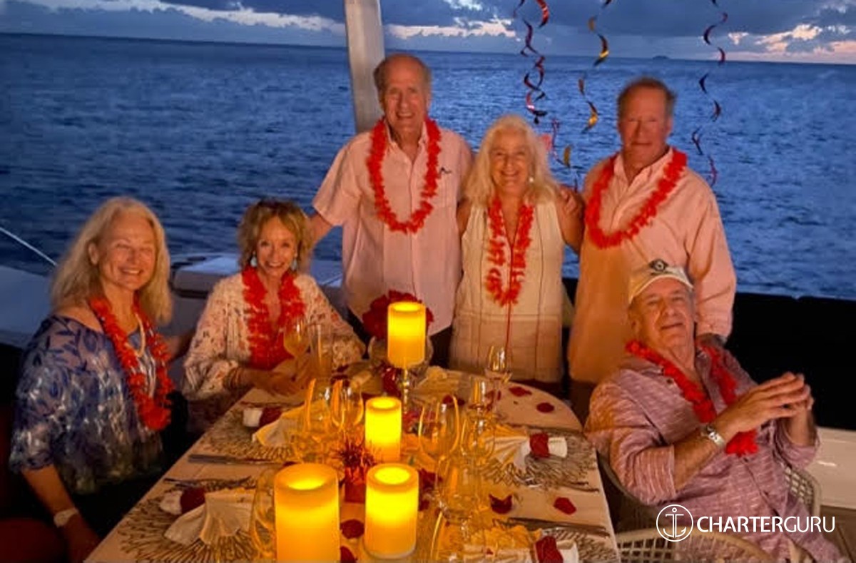 about protocol and we joyfully and safely met the superb Mariah Crew in St. Thomas. Captain Kevin Gentles and his Crew, immediately set the tone for fun with their high spirited enthusiasm, professionalism and character! Their work ethic shining brightly anticipating our every need!!!