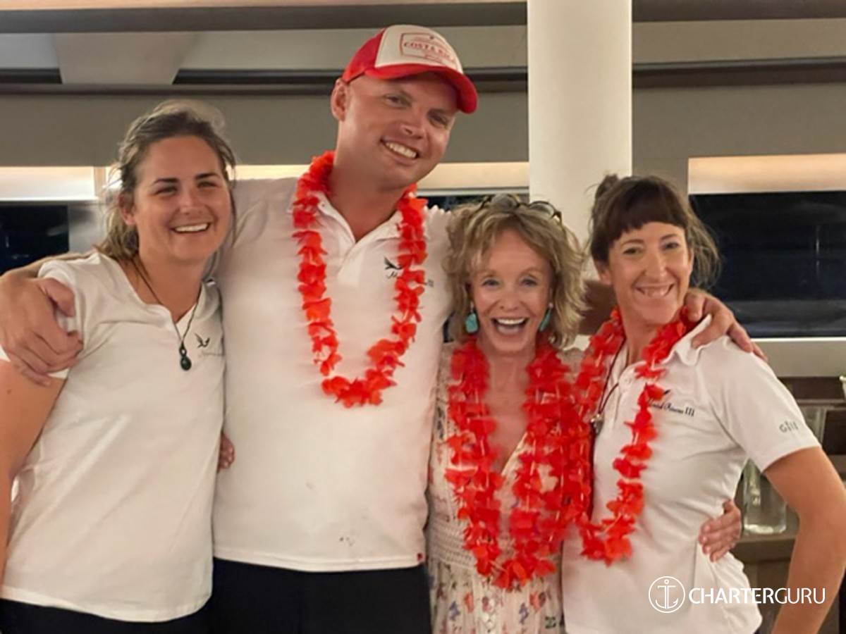 While the boat is special you 5 made this trip amazing. Robert chaperone and drone skills, Simeon’s soft-spoken leadership & quick wit, Kim’s beautiful heart and amazing culinary skills, Jason’s uncanny ability to fix anything and talent at getting all of us to engage with new water activities and Lucie’s precious heart, intent to learn and communicate with us in English, talented bartender and decorator for all our festivities!