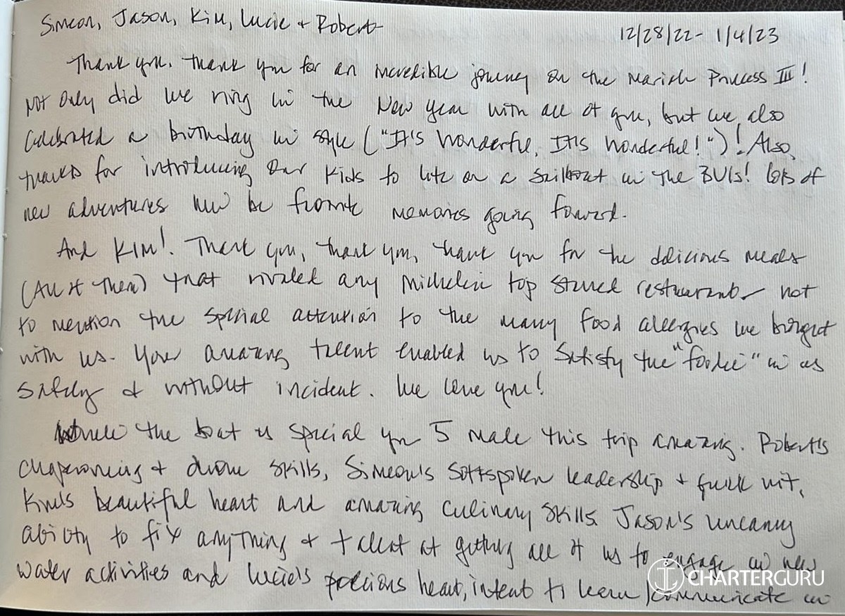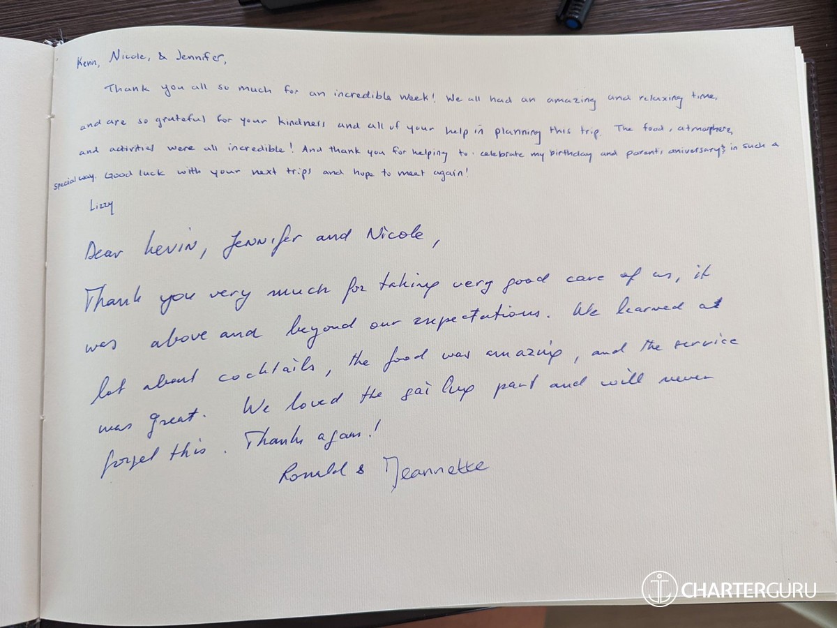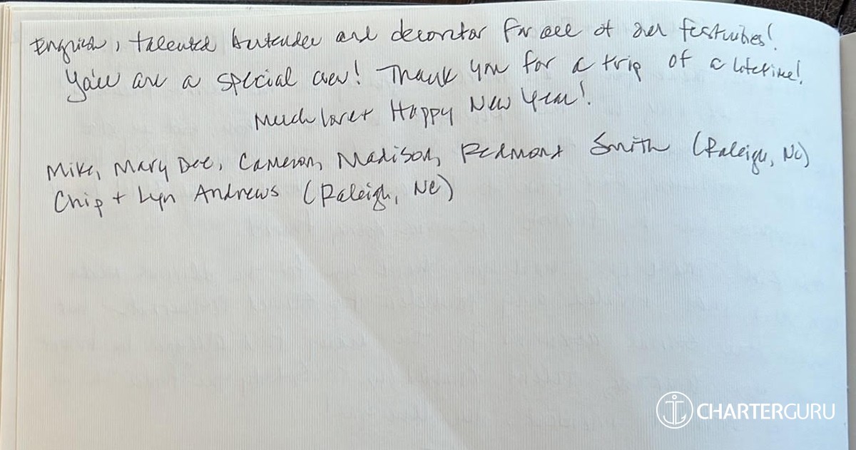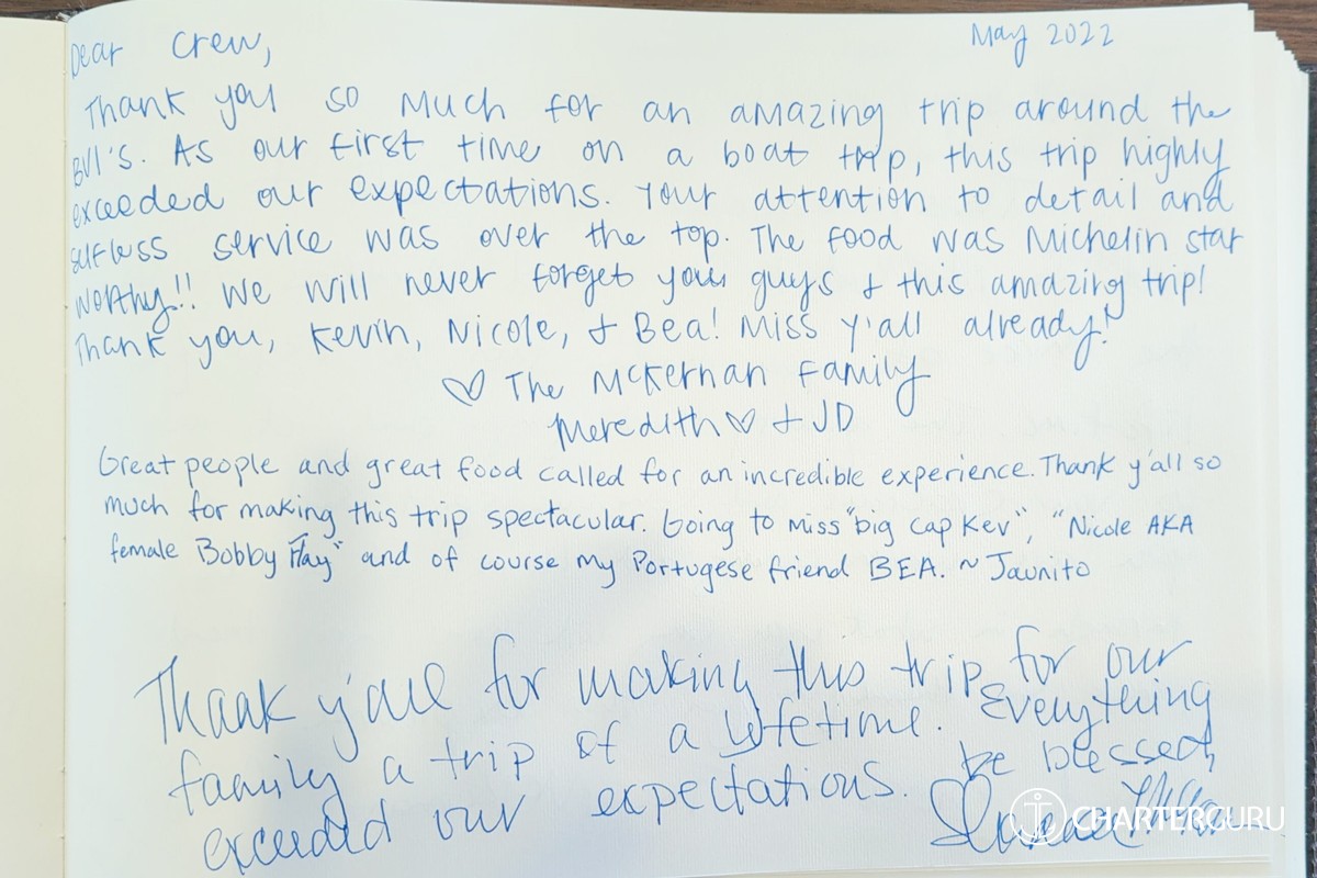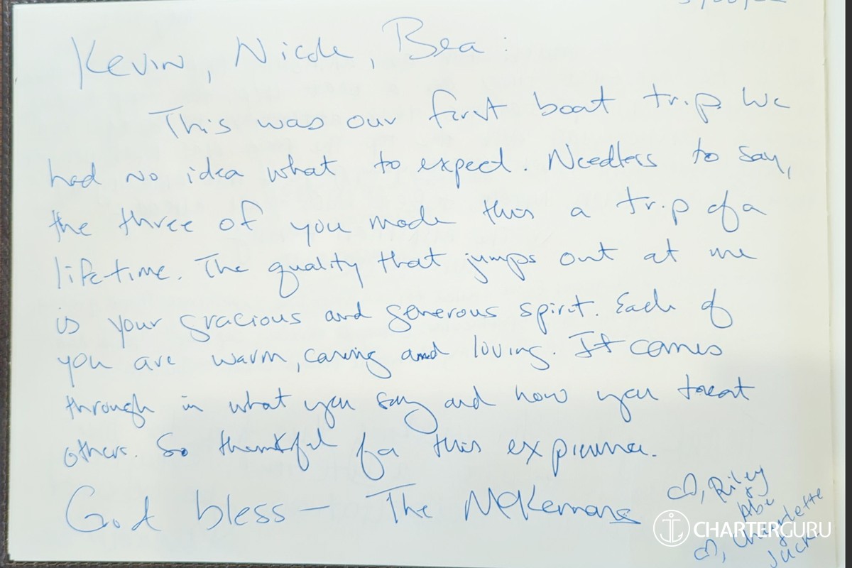 Sorry, we took up 3 pages, but we just wanted to thank you for such an amazing trip. Y’all are such wonderful people, this trip was so special because of you guys: Kevin, Nicole, and Bea. Thank you for such a memorable trip. We will miss you dearly. Have a blessed Safe Year, Hope to see y’all soon.