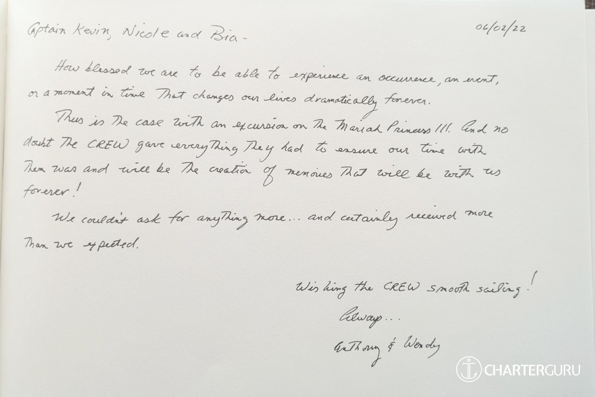 Thank you. Thank you for an incredible journey on the Mariah Princess III!