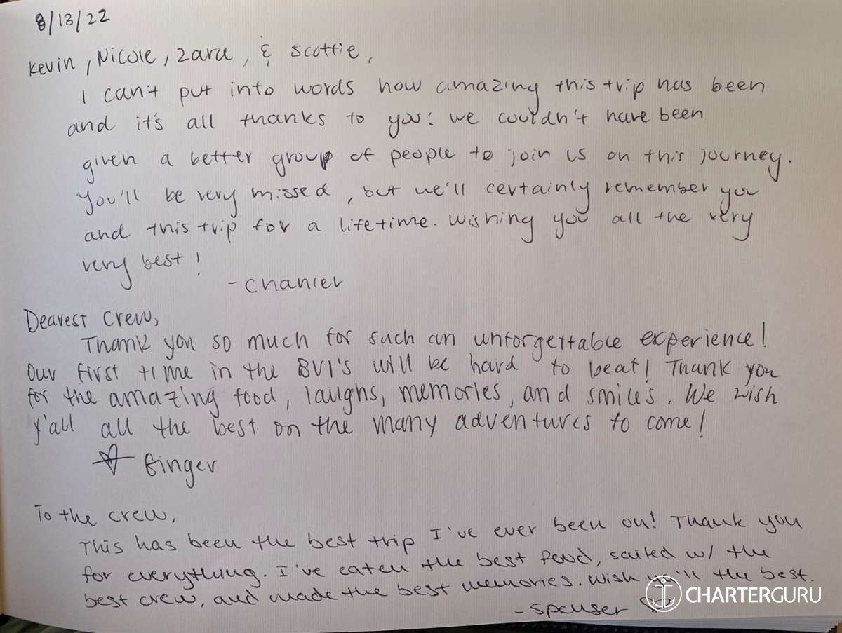 This has been the best trip I have ever been on! I have eaten the best food sailed with the best crew and made the best memories. Wish Y’all the best. Spencer
