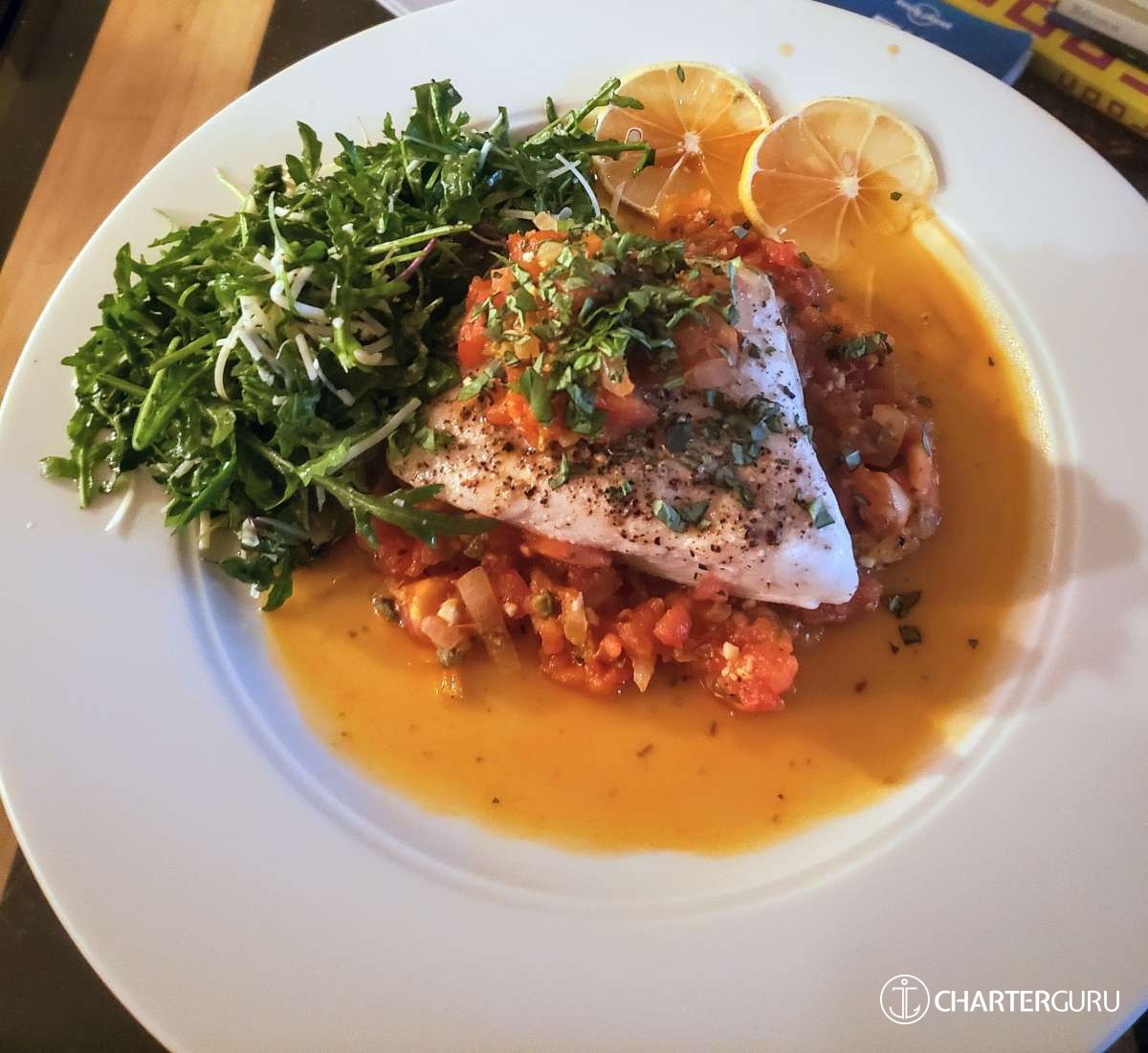 overall, food good and presented nicely. marie, the cook, who is lovely and wonderful, was sea sick for 3-4 days which likely hindered her effectiveness. two meals were overcooked and inedible. captain bastiaan is skilled, energetic, thoroughly knowledgeable with his boat and the bvi, and instills confidence that he can get through any situation. additionally, captain bastiaan wants to please, is extremely personable, naturally entertaining, very bright, worldly, logical, and fun to talk with on a vast array of subjects. i might suggest that virgin island sailing call the client just prior to leaving home on the trip with up to date information as to where and how to meet up with the boat. the bvi is a special place to visit especially sailing. highly recommended! good job!