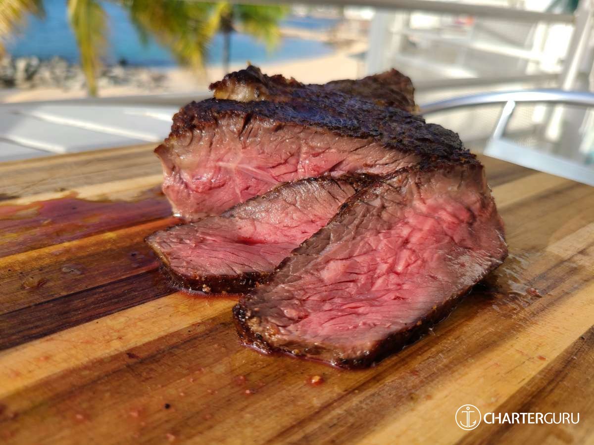 Food......8 Jennie, the first mate, did a great job of preparing food. She also was really into plating and really catering to our group. I would recommend perhaps more bbq - we had hamburgers one day and Jennie grilled them to perfection. That would be my only comment - more grill!