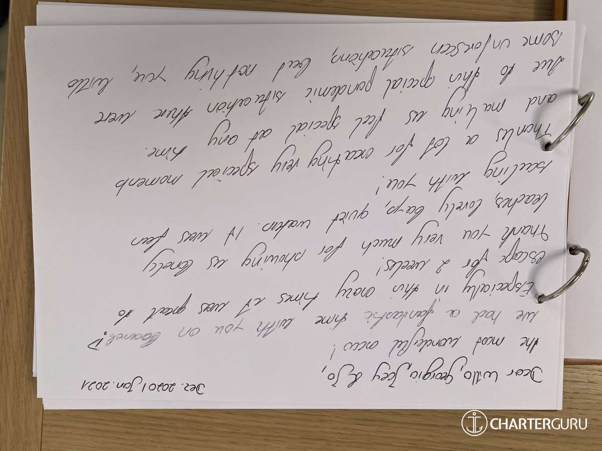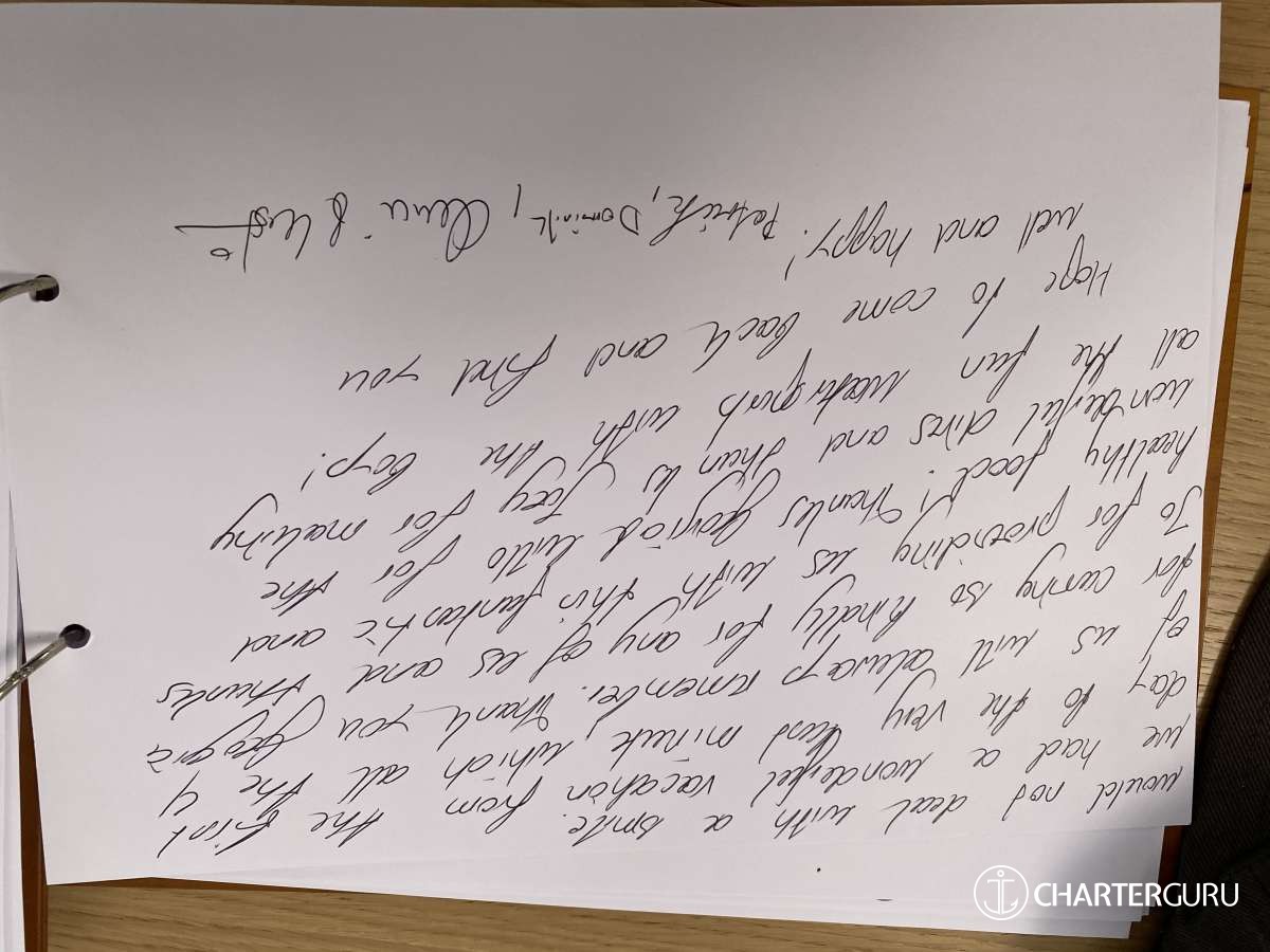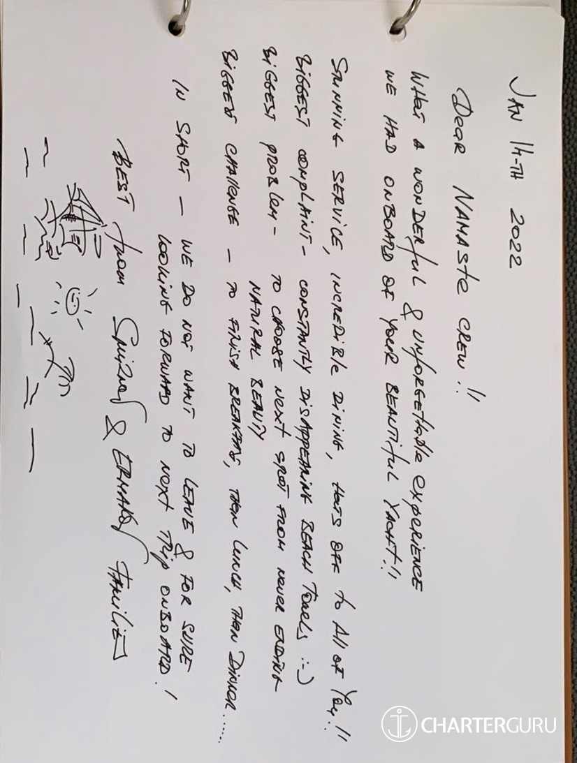 Thank you very much for this wonderfull time on board of NAMASTE. All of us had a wonderful time and we enjoyed every minute!