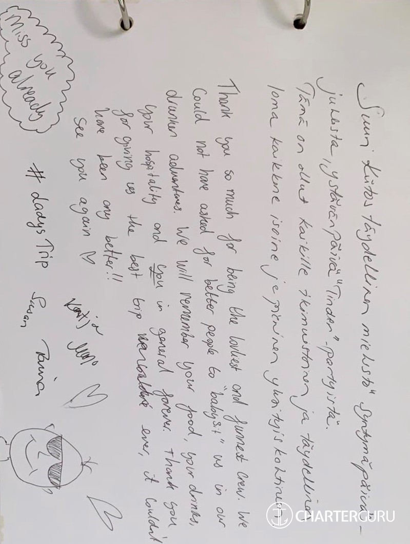 Thank you very much for showing us lomely beaches, lovely bays quiet waters. It was fun sailing with you!