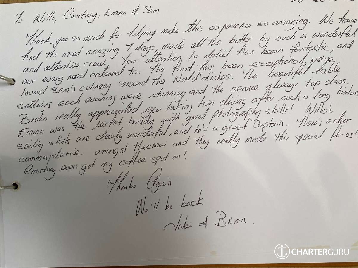 The attention to detail that you put into this charter was incredible and the whole itinerary and restaurant organization was perfect !