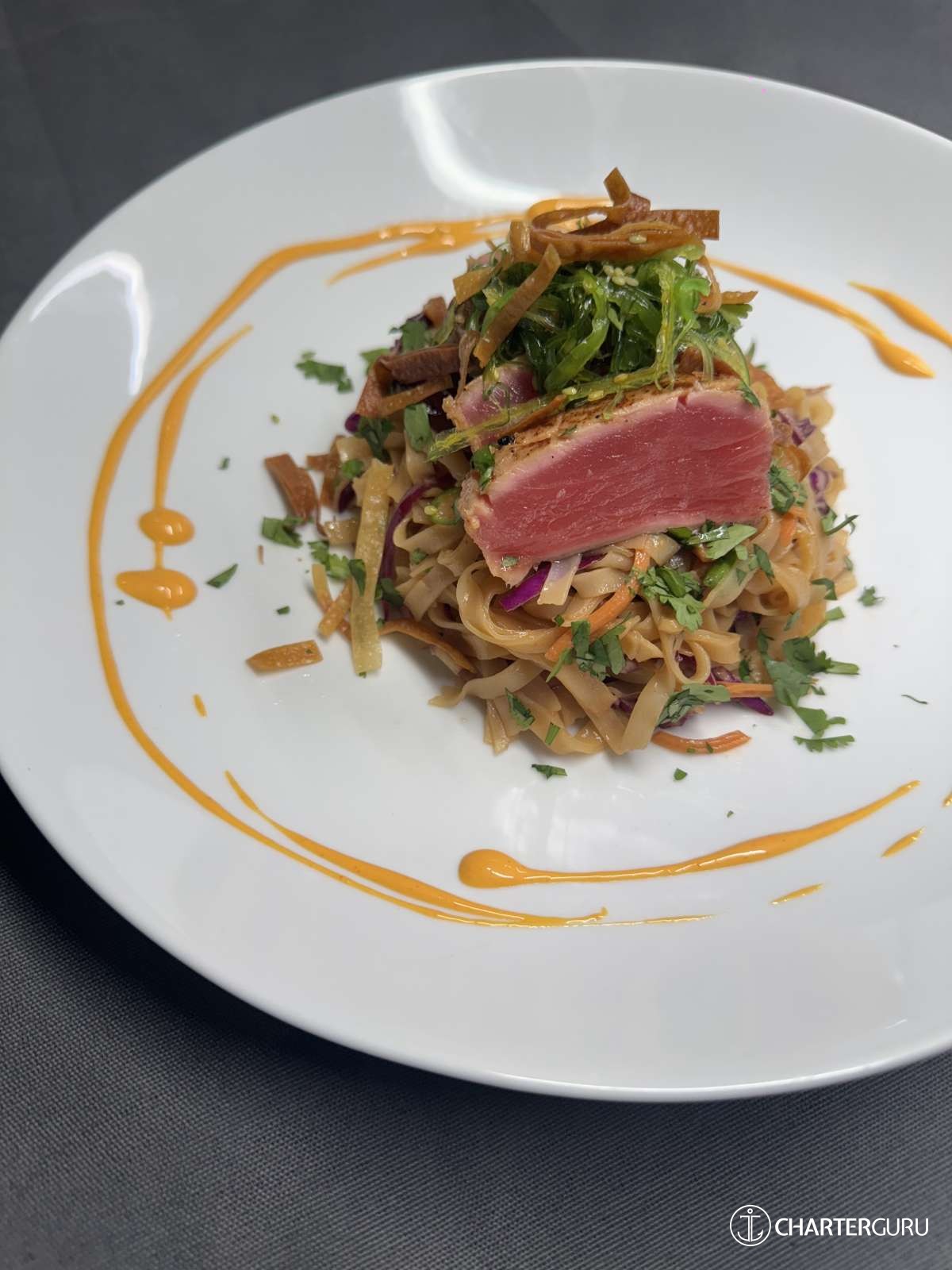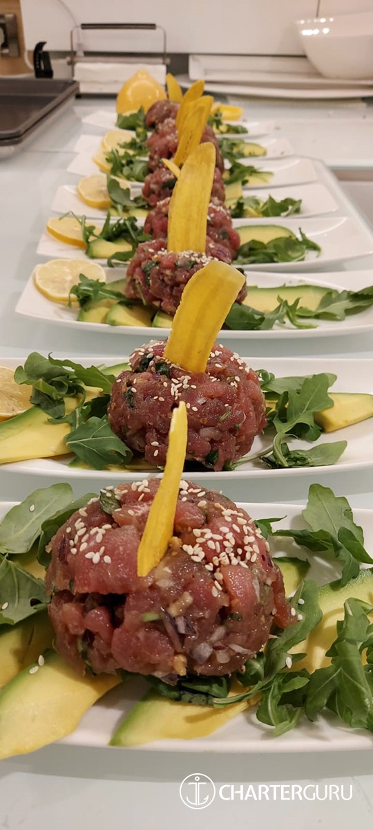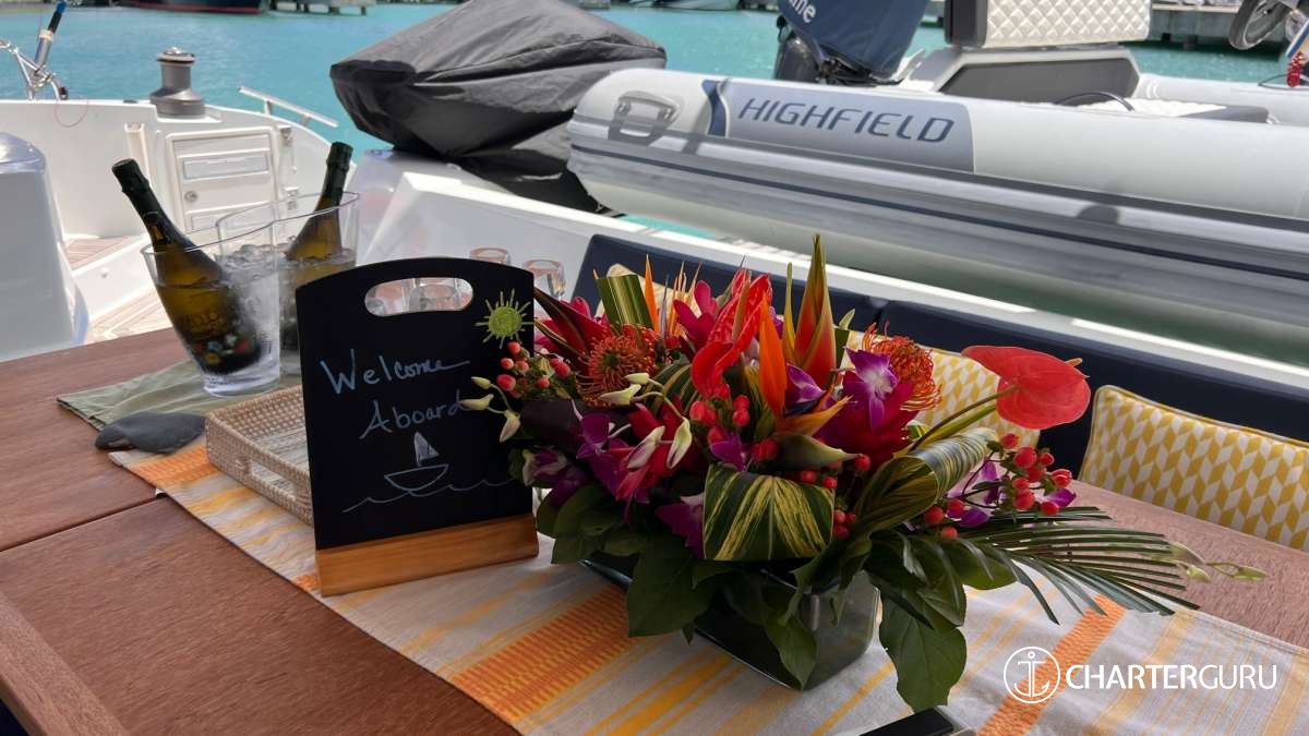 I want to tell you that Tim and Stephany were wonderful people. We felt very pampered, they are extremely professional, competent and overall caring people. They gave us whatever we asked for, if we wanted a certain spot, or a certain activity they made it happen. Stephany was always thoughtful, handing us ice water (especially good for the kids because they forget to hydrate), handing us towels, hanging our wet items, asking us what we needed, handing us our snorkel equipment, etc. Tim was wonderful with the kids, teaching sailing, fishing with James, bringing the kids tubing, bringing us snorkeling whenever we wanted. Tim prepared fresh tuna that James caught, took photos of us jumping, just overall friendly, accommodating, and fun. What lovely people! We would like to charter with them again.