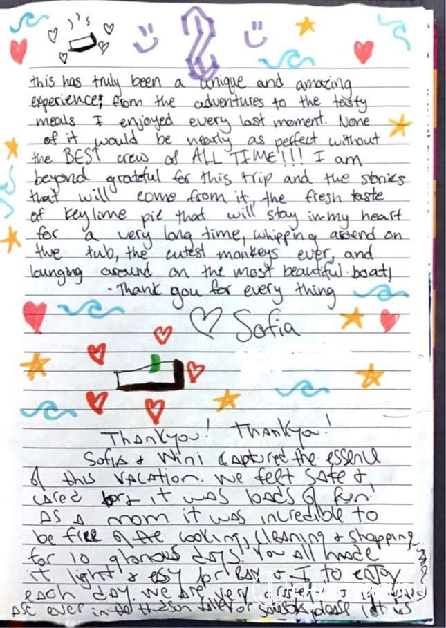 “Thank you for the endless memories; the best vacation ever! We loved every minute of our week because of your hospitality and thoughtfulness. Please keep in touch…The best type of ships are friendships.