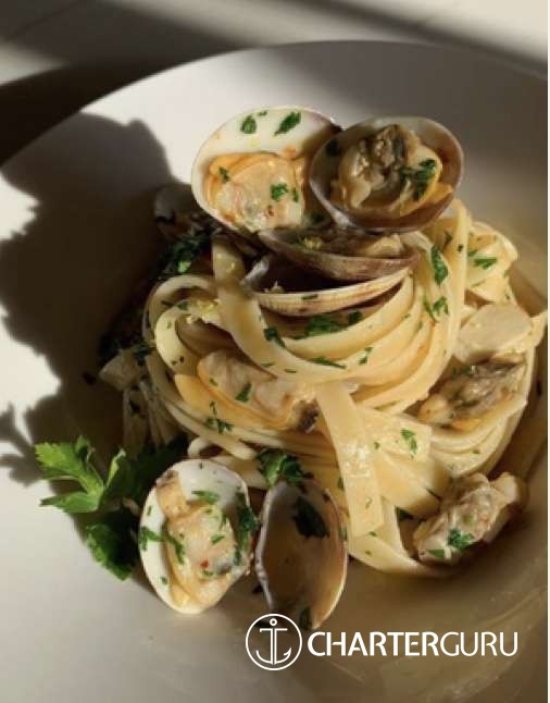 Half Board Option: Includes 7 breakfasts, 4 lunches & 3 dinners. Requires 3 lunches & 4 dinners ashore at client expense. Deduct $150/per person from the all-inclusive charter rate for half board. The entire yacht must choose either half board or full board.