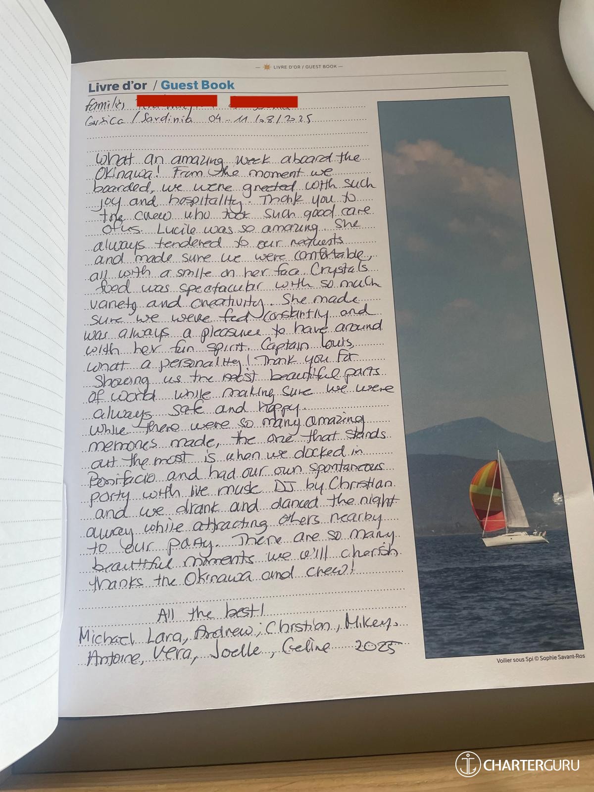 In any case, the crew did an excellent job, demonstrating great availability, especially considering the presence of two very young children on board, with special needs (bottle feeding, special lunches and dinners for the two-year-old, etc.).
