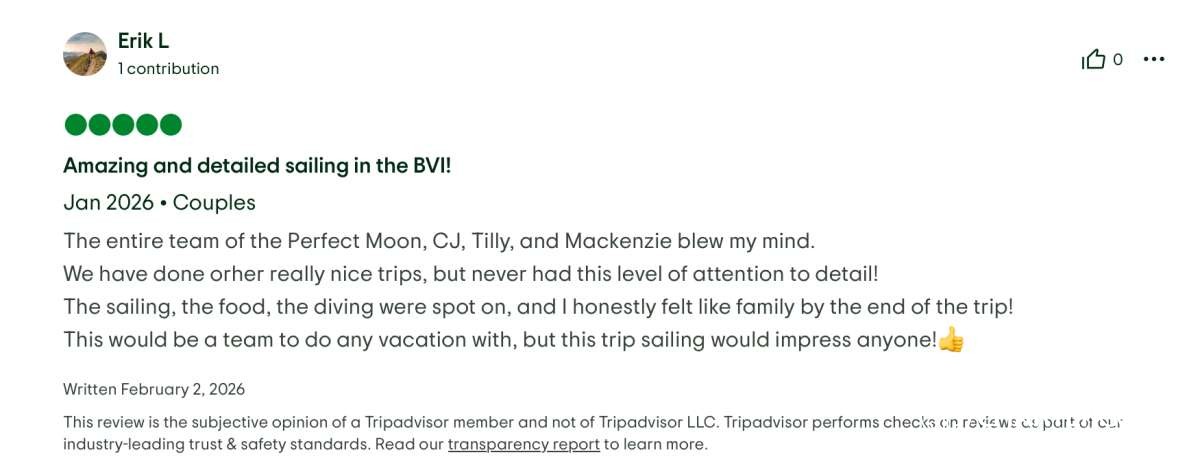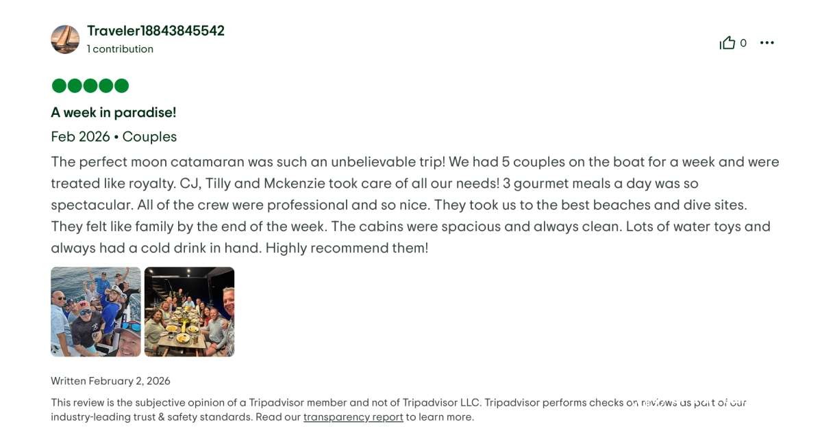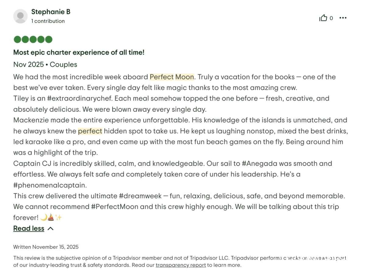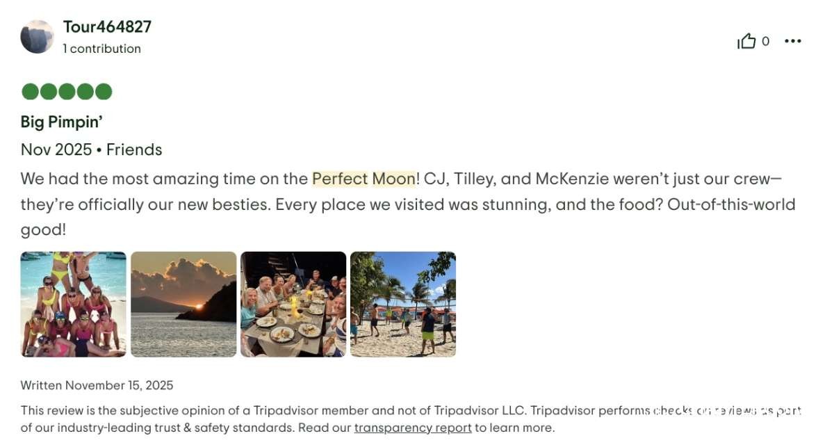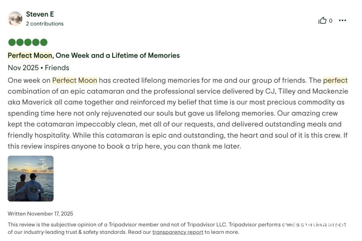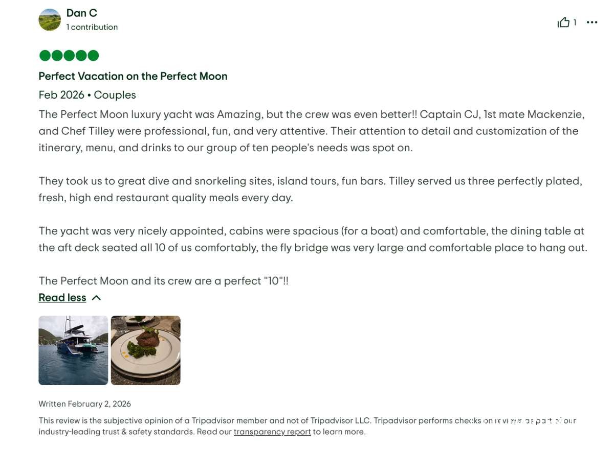 This crew delivered the ultimate #dreamweek — fun, relaxing, delicious, safe, and beyond memorable. We cannot recommend #PerfectMoon and this crew highly enough. We will be talking about this trip forever! 🌙⛵✨