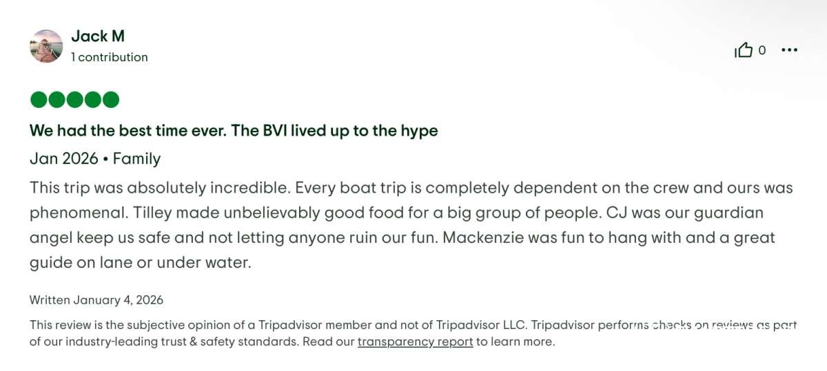 Captain CJ is incredibly skilled, calm, and knowledgeable. Our sail to #Anegada was smooth and effortless. We always felt safe and completely taken care of under his leadership. He’s a #phenomenalcaptain.