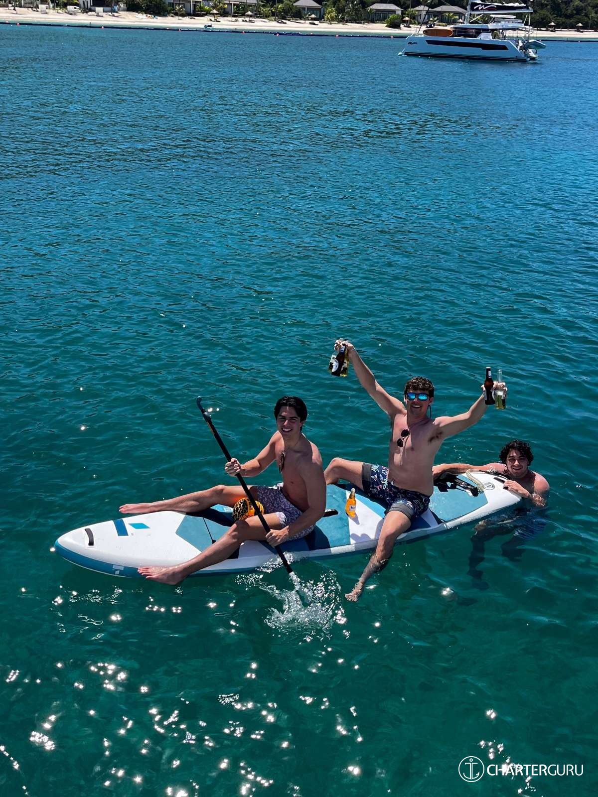 PERPETUAL BLUE is classified primarily as a sailing catamaran. The yacht layout radiates from the main saloon, which connects to the aft deck. The aft deck is where heart of the yacht is and usually it is where you, as a charter guest, spend most of your time. The fascinating cabins offer designer mattrace beds and feature ensuite bathrooms. The cabins are located in the 2 massive hulls. Multiple portholes connect you with the outside world.