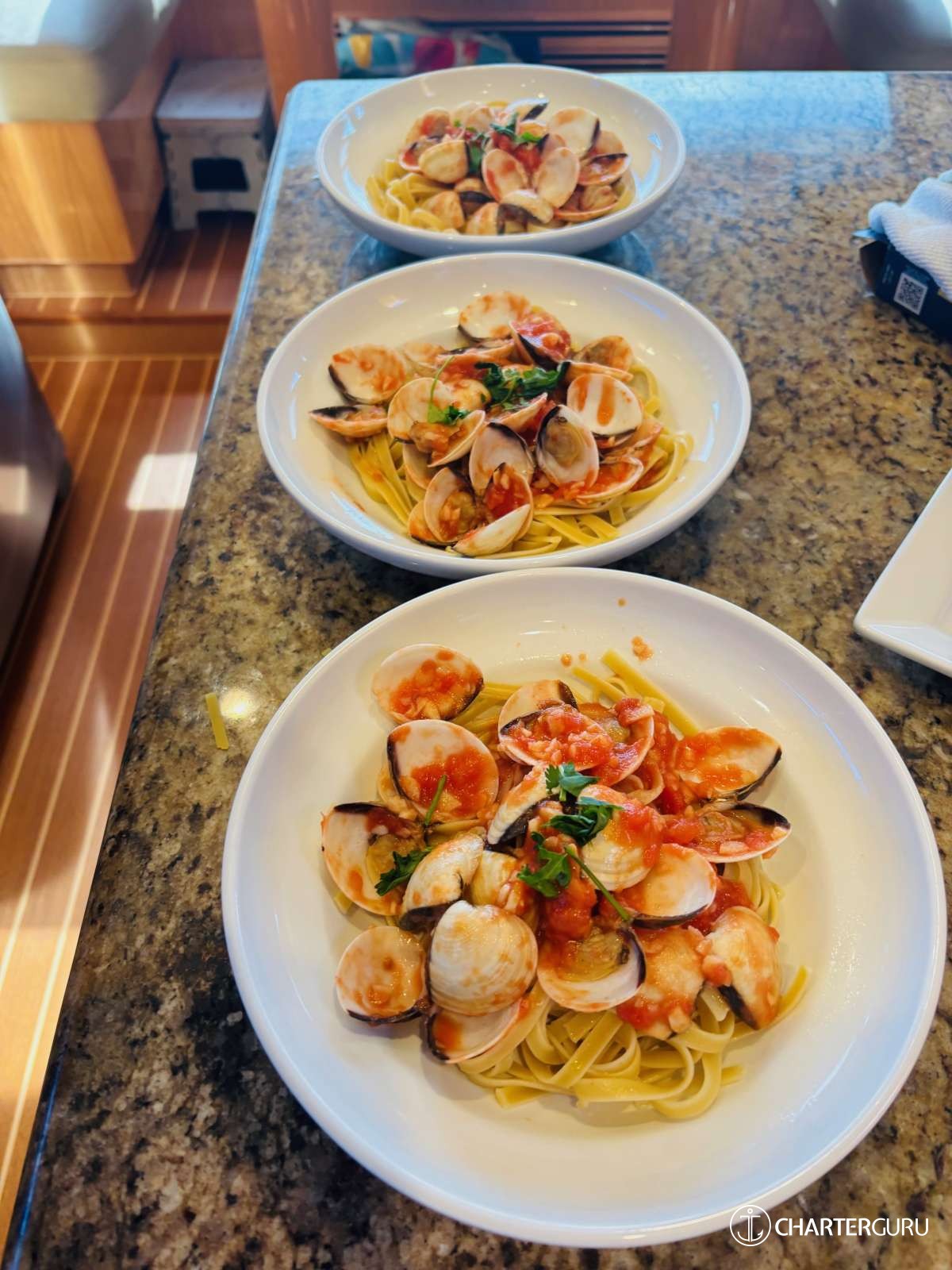 Half Board Option: Includes 7 breakfasts, 4 lunches & 3 dinners. Requires 3 lunches & 4 dinners ashore at client expense. Deduct $150/per person from the all-inclusive charter rate for half board.