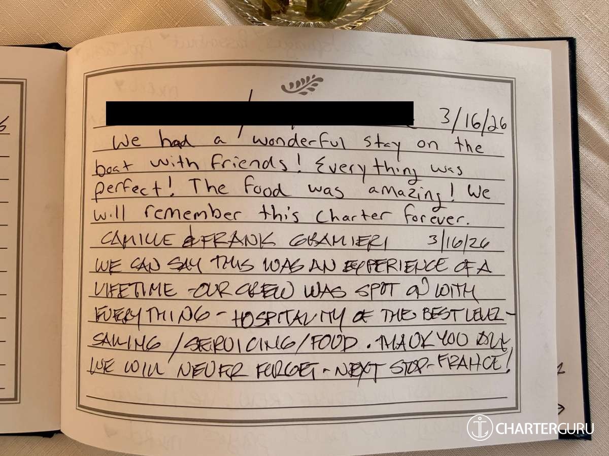 We can say this was an experience of a lifetime – our crew was spot on with everything – Hospitality at the best level – sailing / servicing / food. THANK YOU ALL ! WE WILL NEVER FORGET – NEXT STOP – FRANCE!