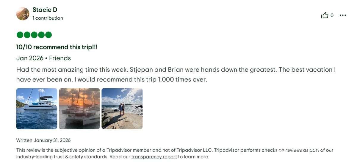 I really want to emphasize the incredible work ethic of both Jason and Rein. The amazing duo was knowledgeable, safe, professional and accommodating. I think you are aware that this was a trial run for Kelly and I potentially acquiring a catamaran and Rein patiently answered all my never ending questions about the boat, sailing, provisioning, power systems, options and market trends.