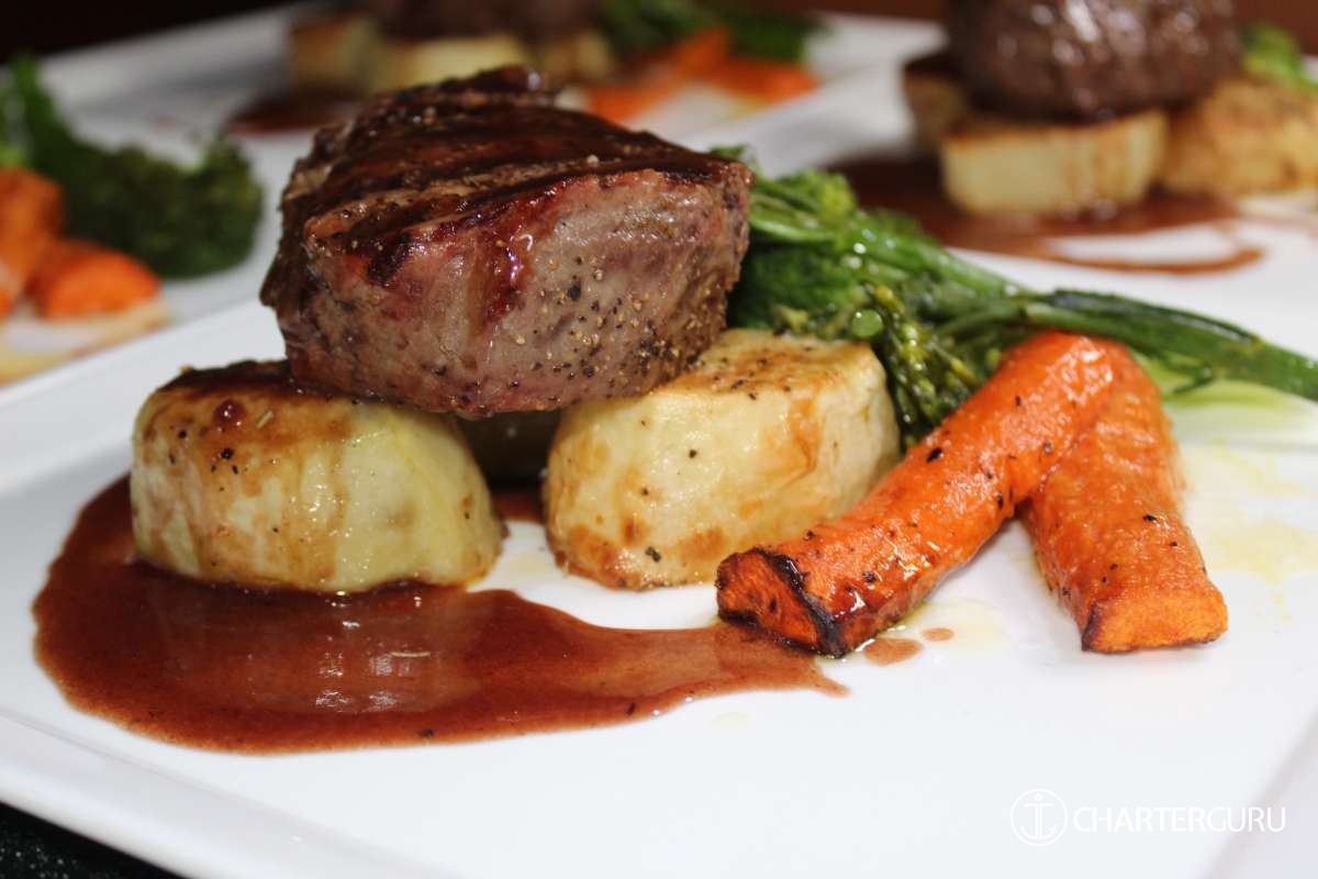 HALF-BOARD OPTION: OFFERED ON 7 NIGHT CHARTERS ONLY ($150 off per person)