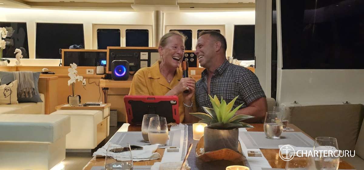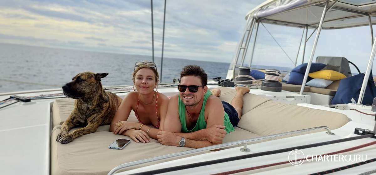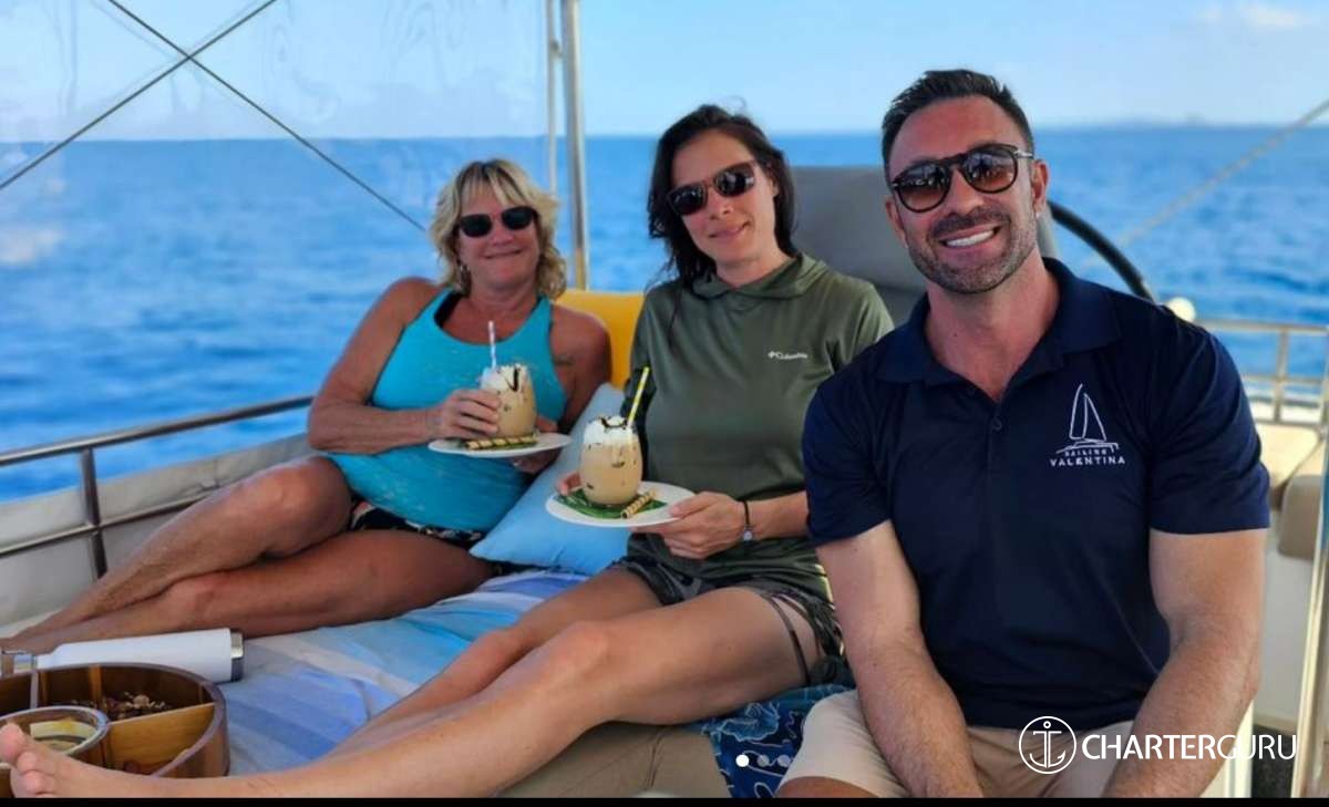Our time on Valentina was truly unforgettable, thanks to the exceptional attention and care from her crew, Capt. Josh and Chef Gustavo. They ensured our experience was not only safe and comfortable but also enriched with a fun cultural flair. Dining al fresco with the ocean view was wonderful, and we loved the upper deck flybridge and seeing the massive sails go up! Spending time on the trampoline with Linda (special paw officer) was also really special and added a unique and fun touch to our trip.