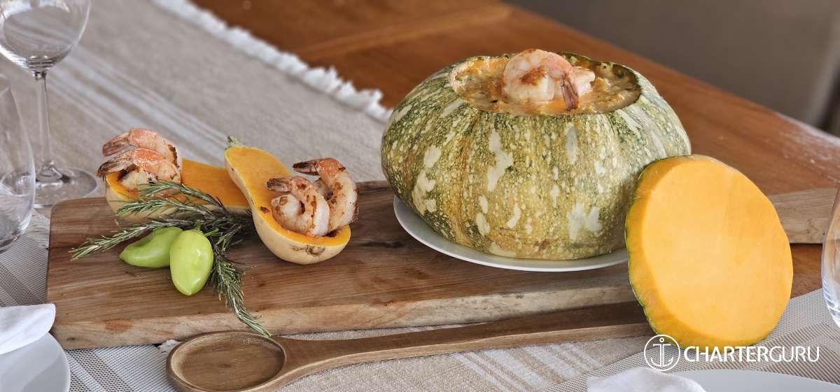 We spent another extra "long weekend" aboard Valentina and it was amazing again! We started in St Martin where we enjoyed custom cocktails and deliciously creative snacks while we settled into our cabins and navigated through the lagoon. Once out we had a wonderfully easy sail to the stunningly gorgeous island of Anguilla, where we anchored and took the tender to the beach to enjoy a lovely sunset. On our return to the yacht, Gustavo made us his native Brazilian shrimp stuffed pumpkin, which was beautifully presented and delicious. The next morning, we chose to take it easy with a late breakfast and some snorkeling, they have the best toys for water fun! Then Josh brought us to visit the nearby Sandy Island by tender where we had some delicious cocktails and lunch on the beach. The rest of our trip continued in a similarly splendid fashion!