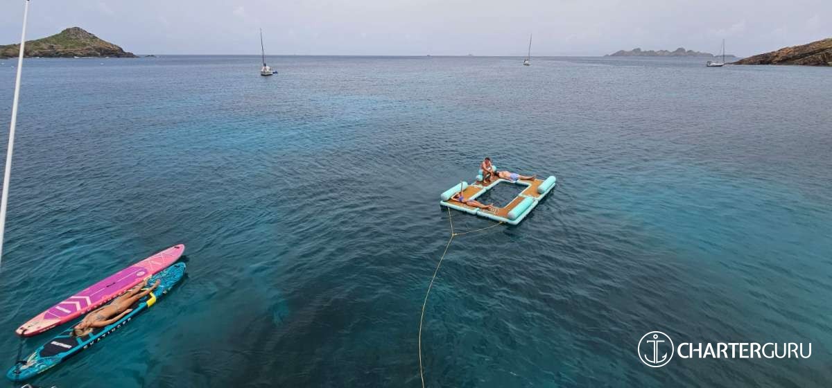 The boat is immaculate and well maintained. The beds, bedding, pillows were wonderful and the AC at night provided for restful sleeping. The selection of water toys were great and always in the water for us to enjoy at every anchorage. Also, the onboard compressor made the diving easy!